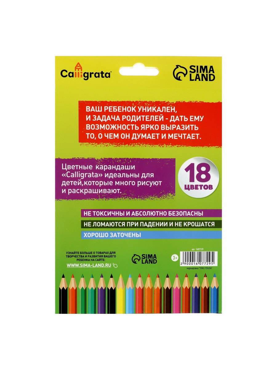 Карандаши 18 цветов, шестигранные, Calligrata, Китай