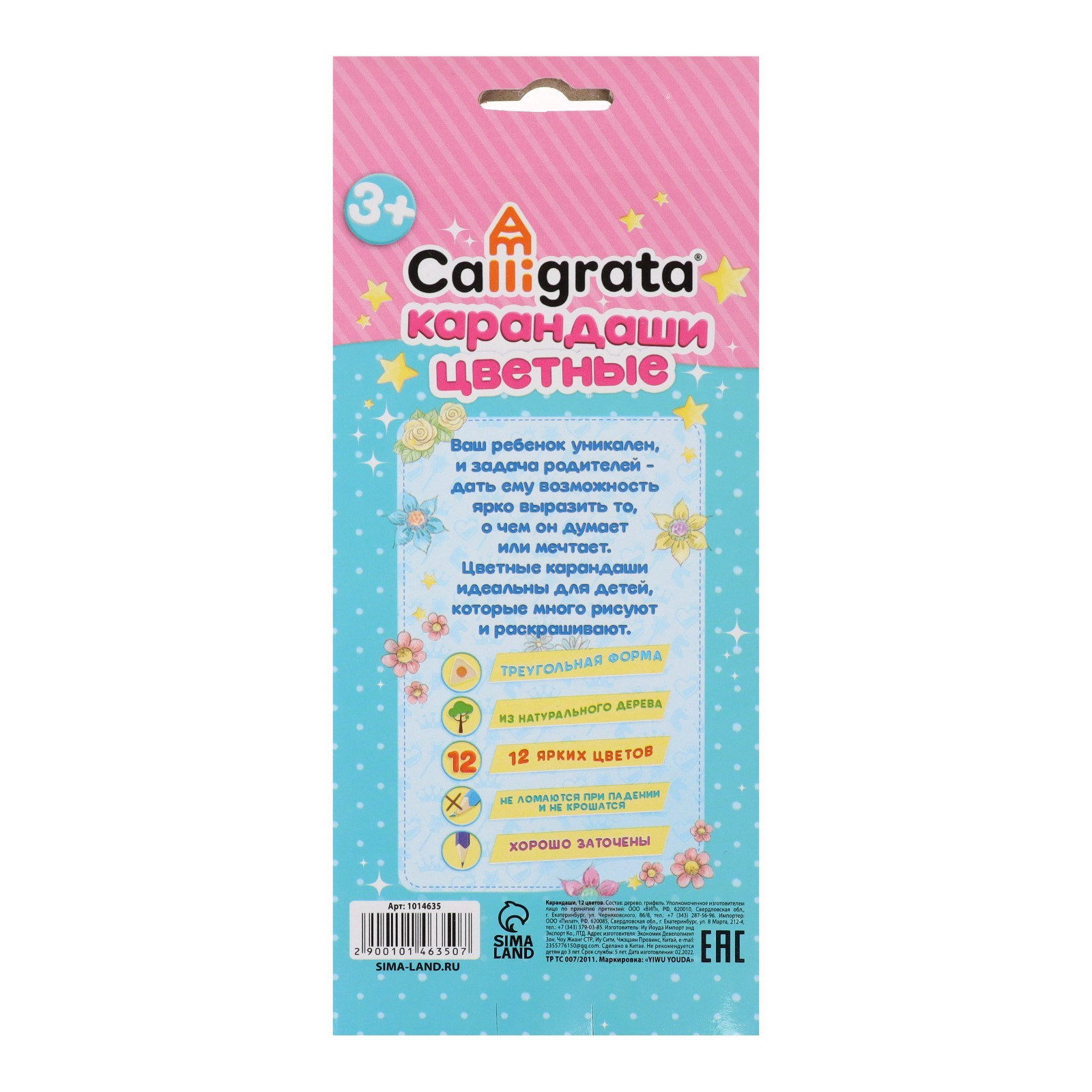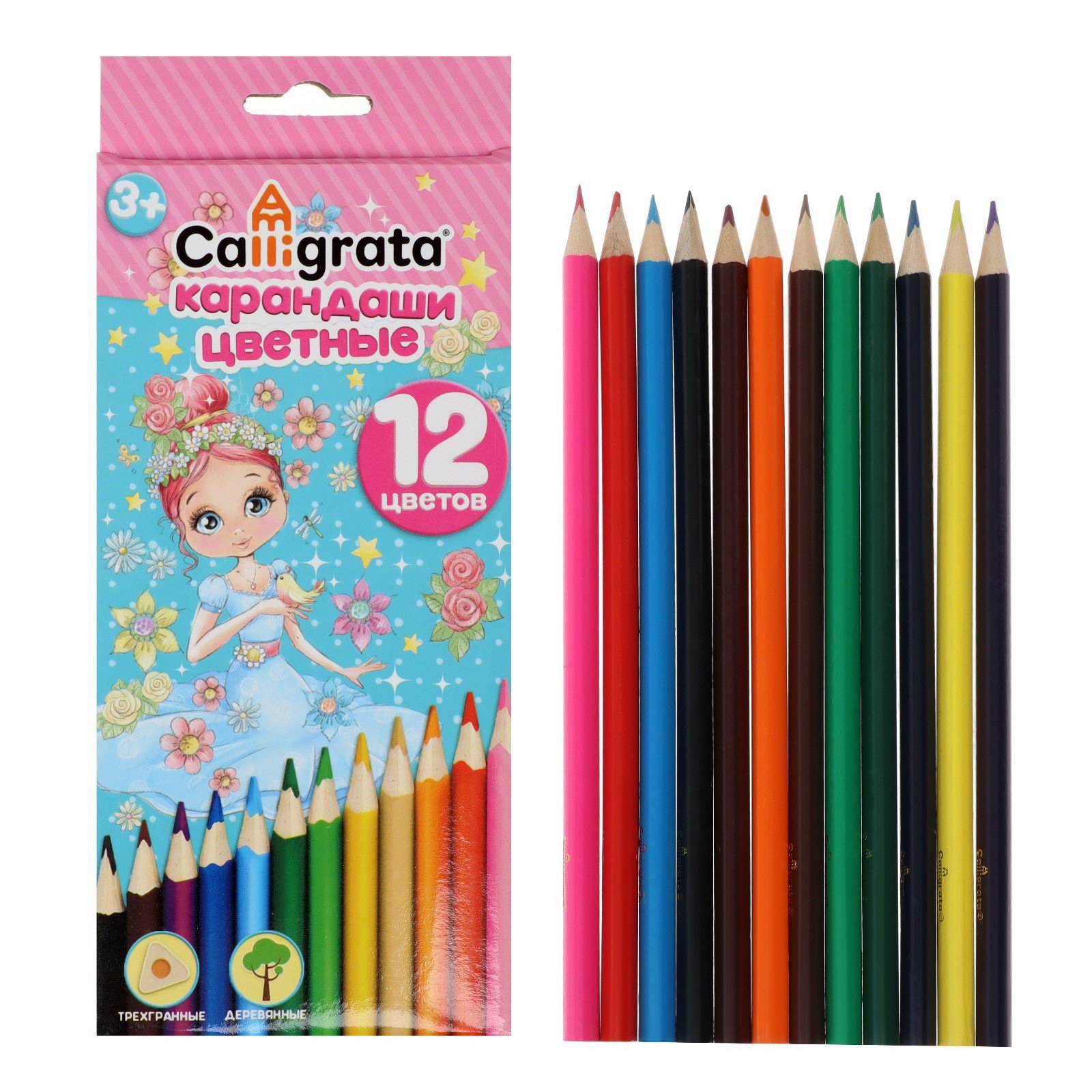 Карандаши "Принцесса", цветные, 12 цветов, деревянные, трёхгранные, 0.8x0.8x17 см., Calligrata, Китай