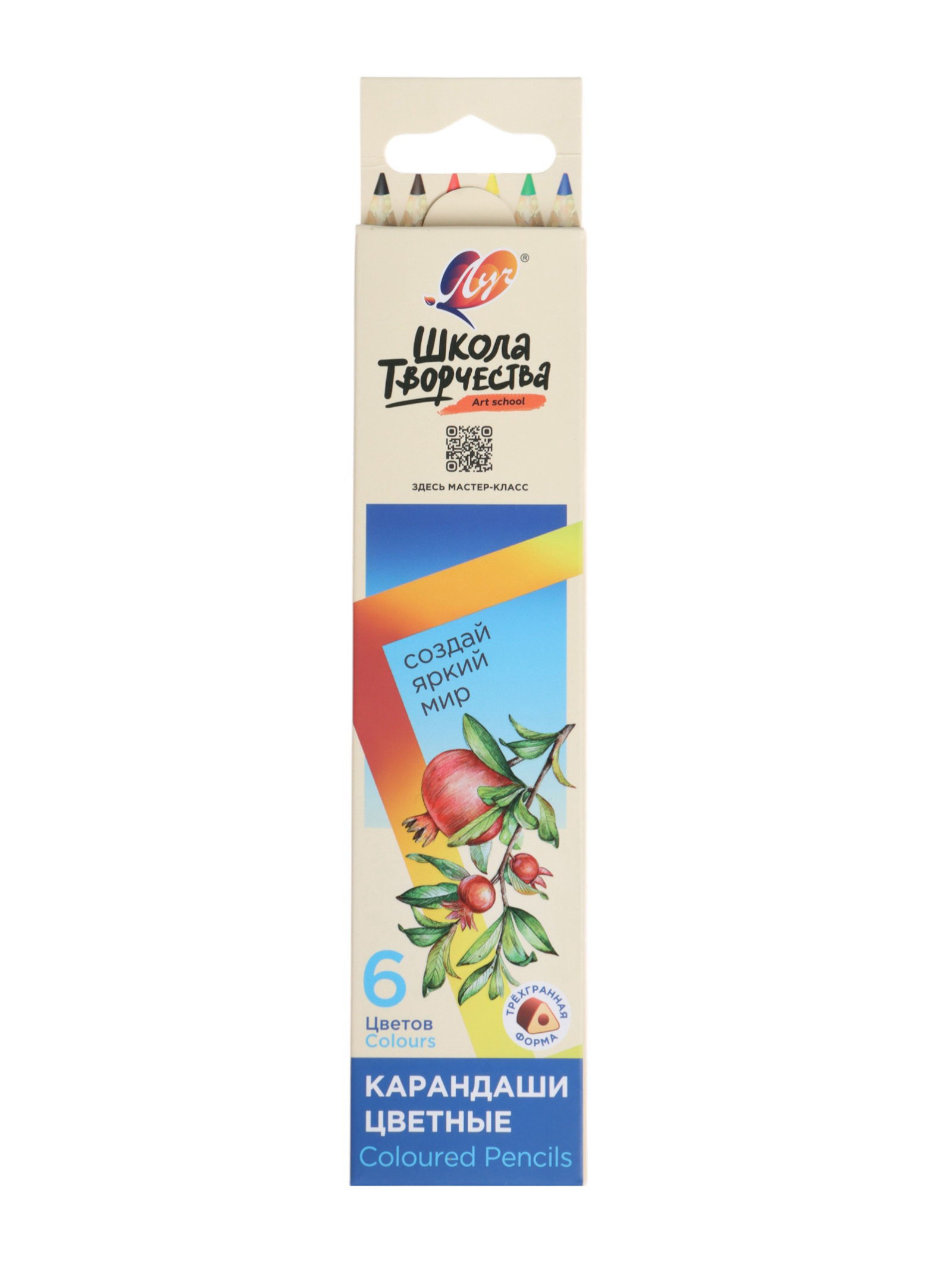 Карандаши цветные 6 цветов "Школа Творчества", трёхгранные, Луч, Китай