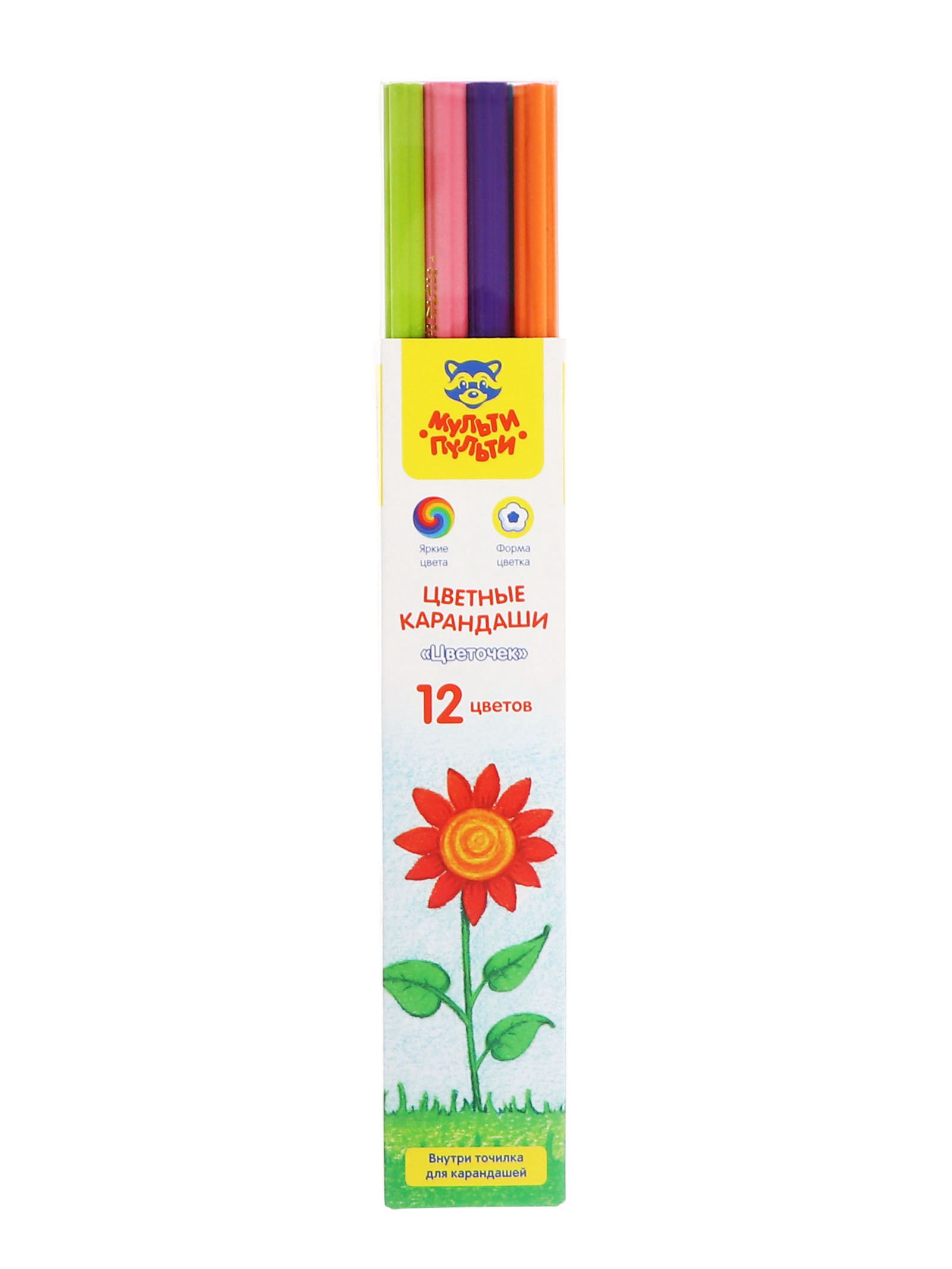 Карандаши цветные пластиковые "Цветочек", 12цв., незаточен., формовой корпус, европодв, Мульти-Пульти, Китай