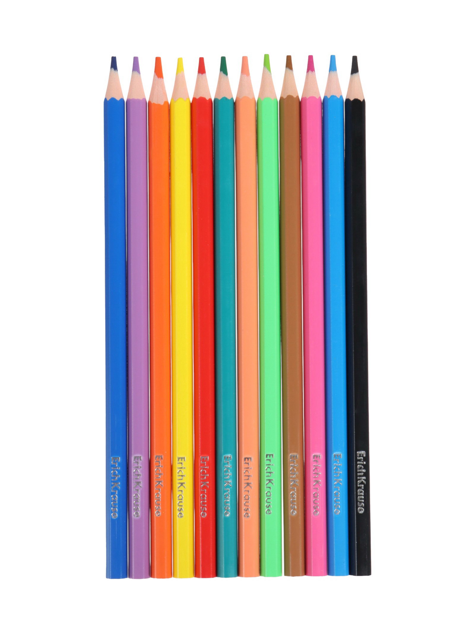 Размер упаковки: 8.8 x 0.8 x 20.8 см. tnved: 9609110000 Температурное ограничение: Нет Набор: Да Европодвес: Да Штрихкод на единице товара: Да Количество цветов: 12 Вид упаковки: Картонная упаковка Материал корпуса: Пластик Форма: Шестигранные Реестр Минпромторга: Нет Цвет: Разноцветный Особенности: Классический Пластиковые цветные карандаши ErichKrause представлены в яркой палитре из 12 цветов. Благодаря шестигранной форме, карандаши удобно лежат в руке и не скатываются с поверхности. Специальная технология изготовления карандаша методом экструзии надежно фиксирует грифель к корпусу, что обеспечивает высокую ударопрочность. Идеальная центровка грифеля и пластичность материала карандаша гарантирует легкую заточку с экономным расходом карандаша. Грифель диаметром 2.6 мм не ломается и не крошится даже при сильном нажиме.