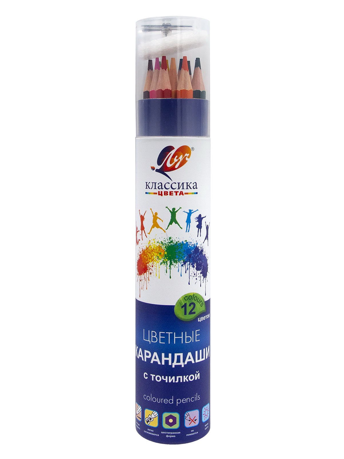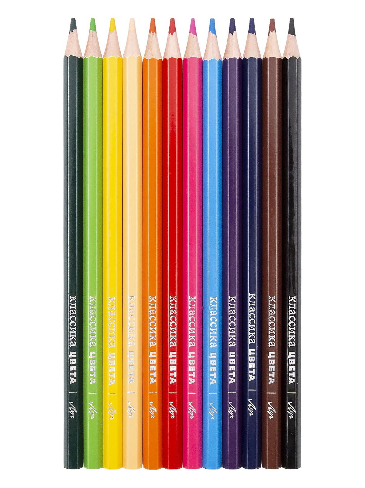 Карандаши 12 цветов, заточенные, шестигранные, с точилкой, дерево, Луч, Китай