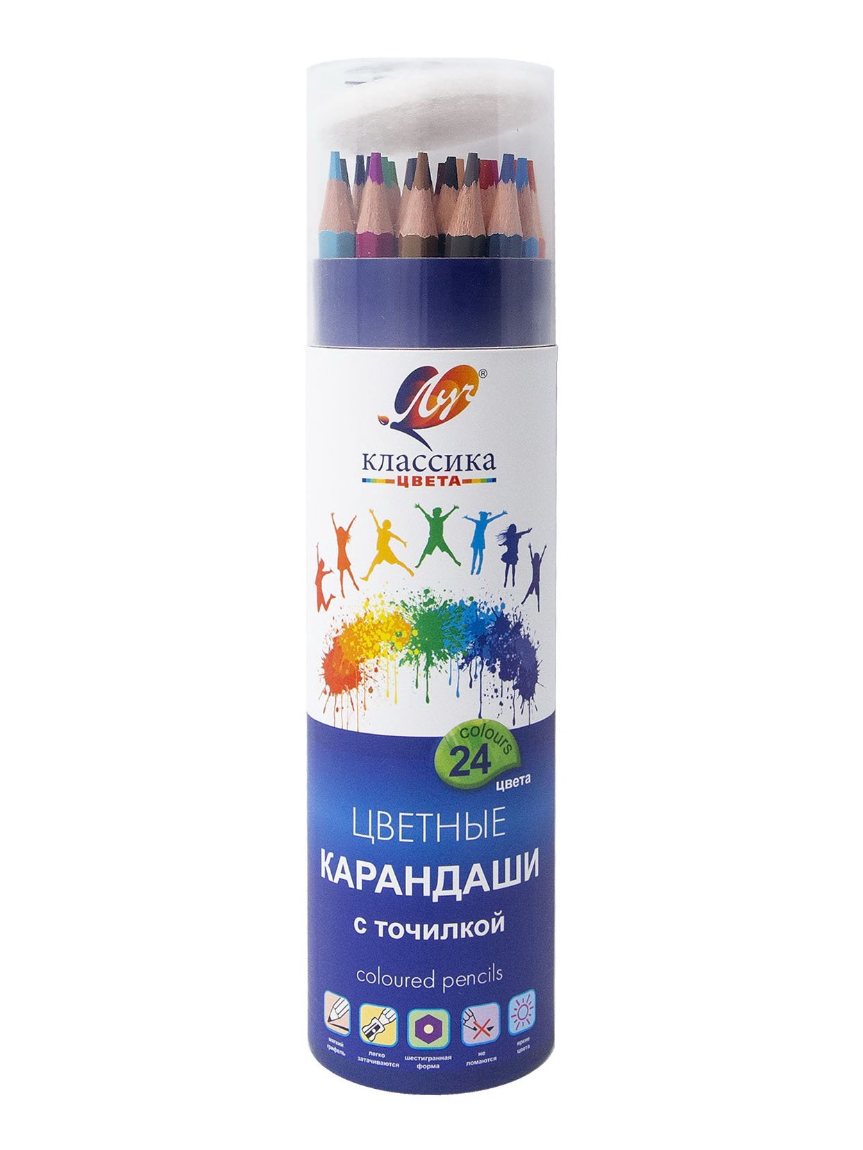 Карандаши 24 цветов, заточенные, шестигранные, с точилкой, дерево, Луч, Китай