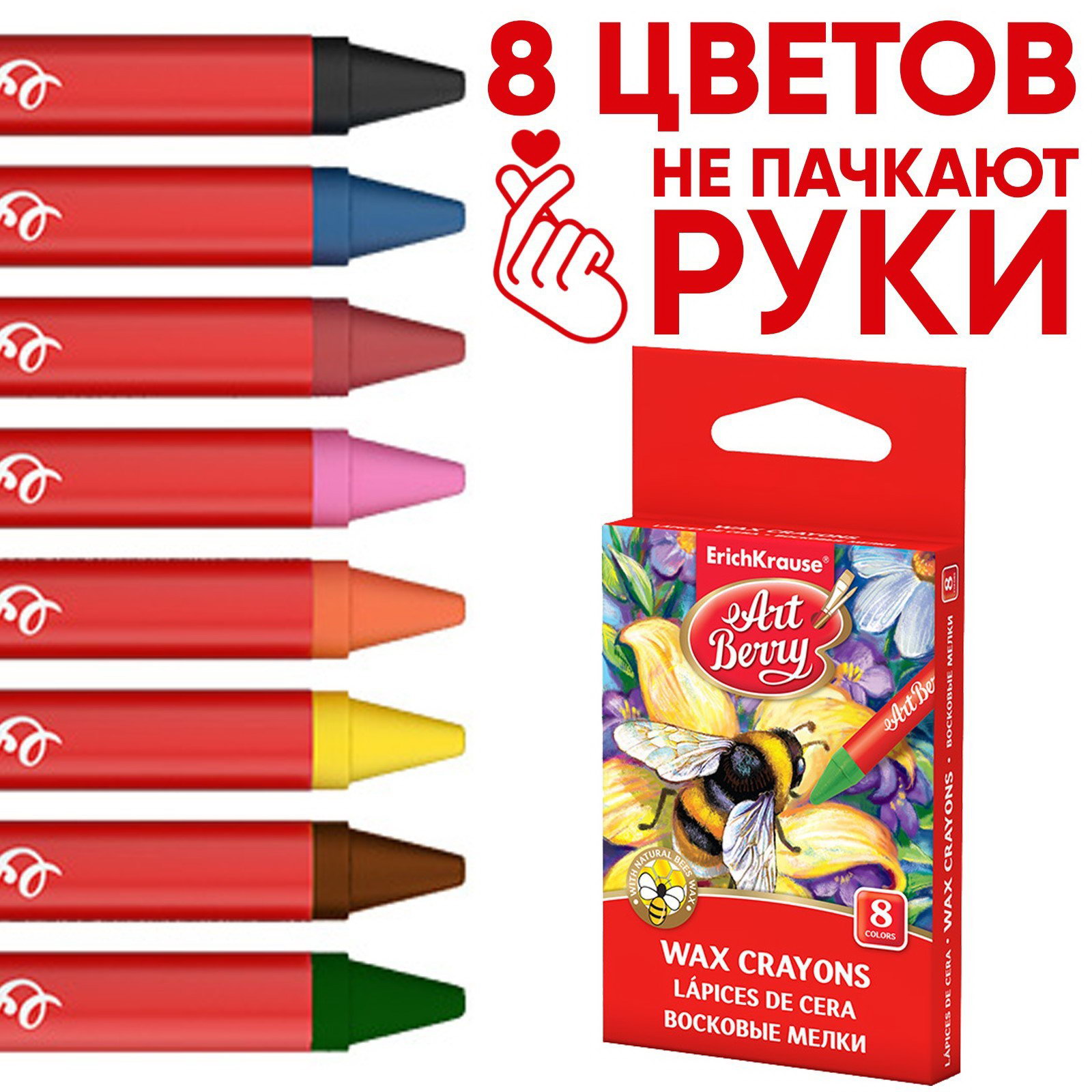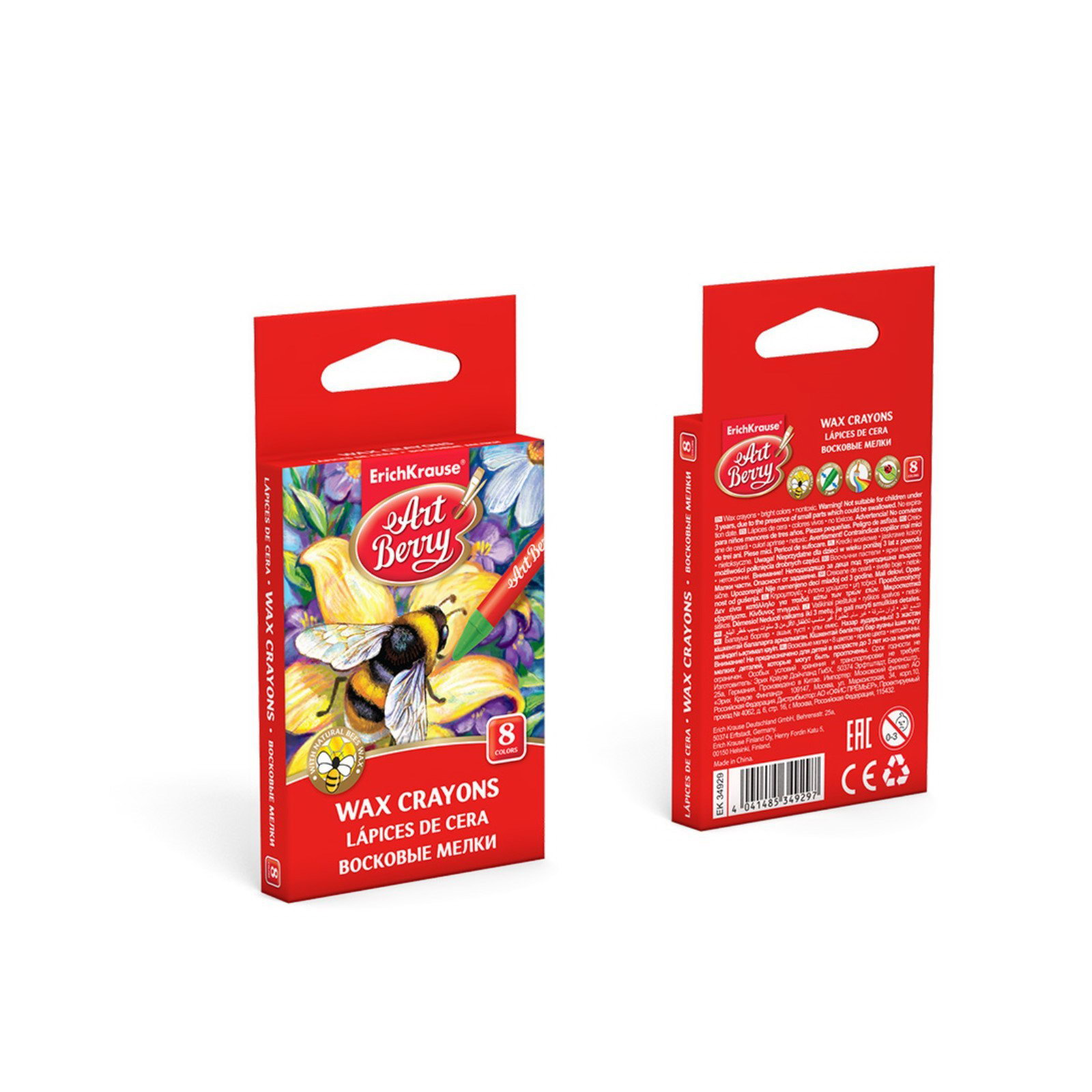 Мелки восковые 8 цветов ArtBerry, диаметр 7 мм, на основе пчелиного воска, европодвес, 2x8.5x2 см., ErichKrause, Китай