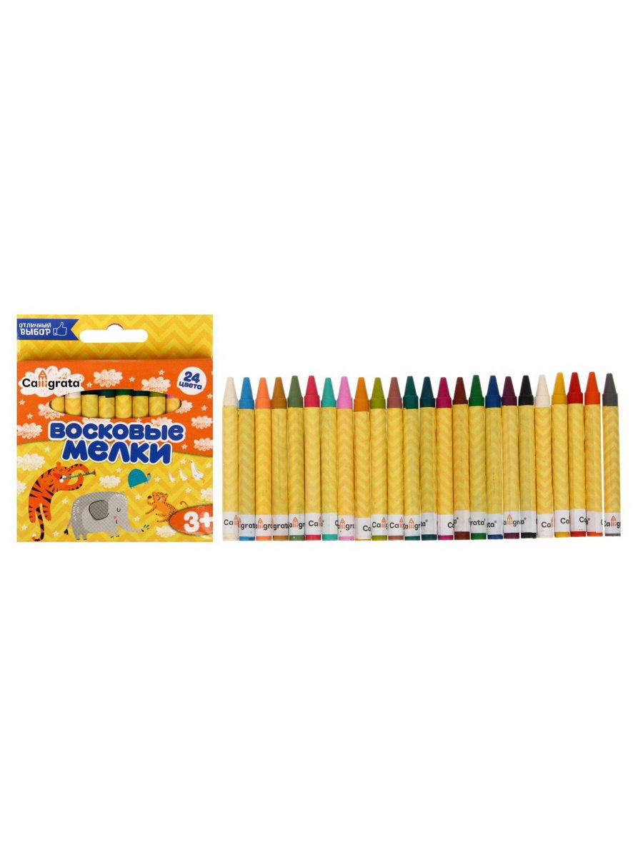 Мелки восковые цветные, 24 цвета, 93x8 мм, Calligrata, Китай