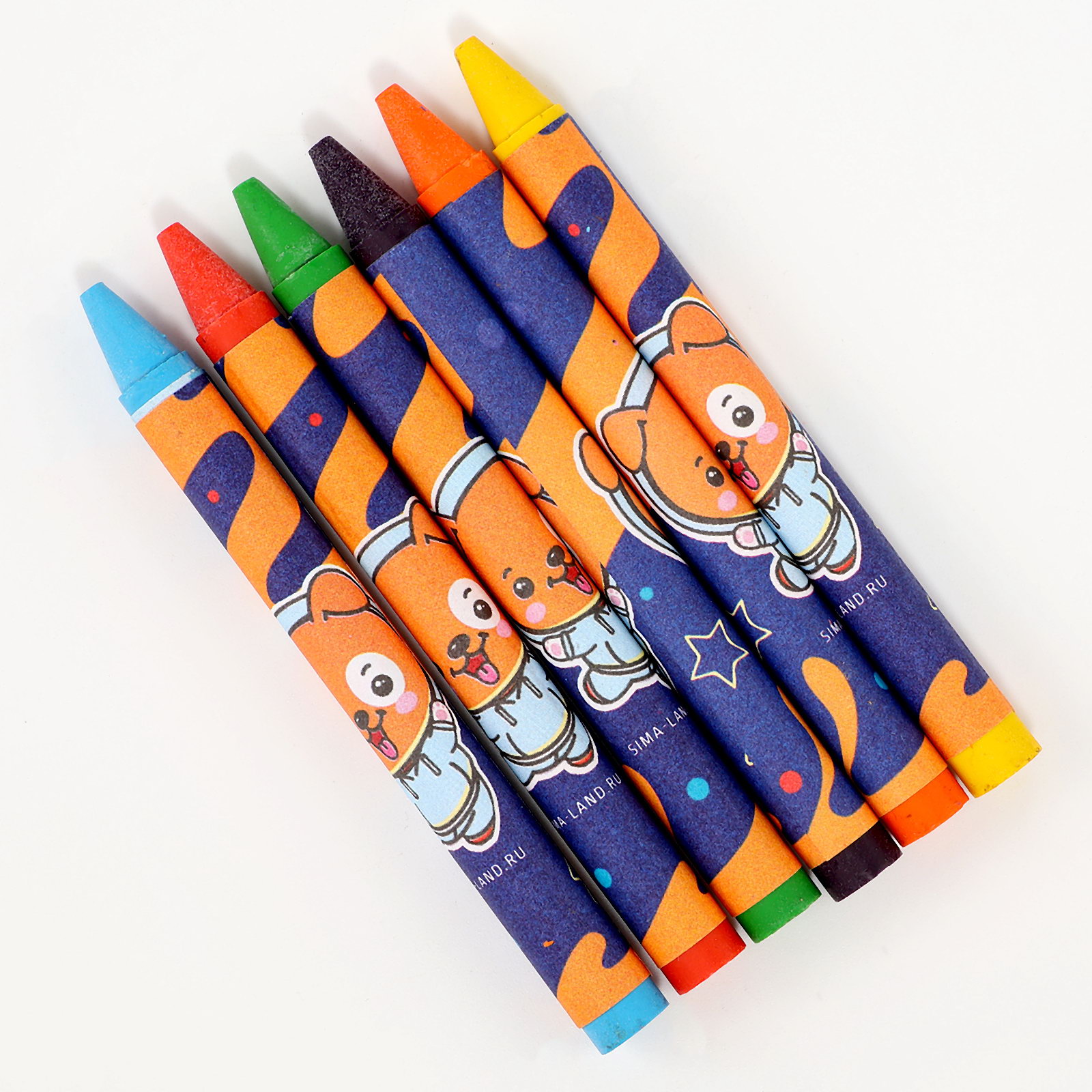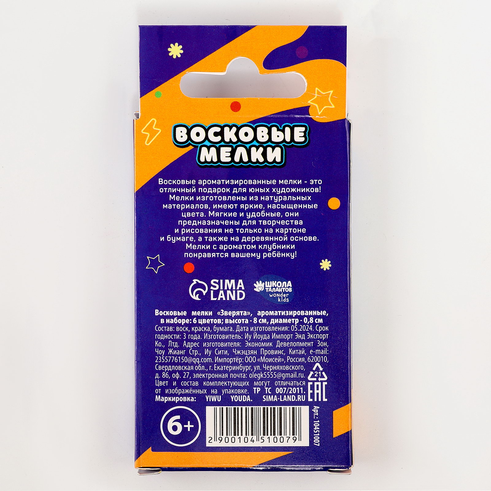 Восковые мелки - карандаши ароматизированные "Зверята", 6 цветов, 5.3x8.7x0.9 см., Школа талантов, Китай