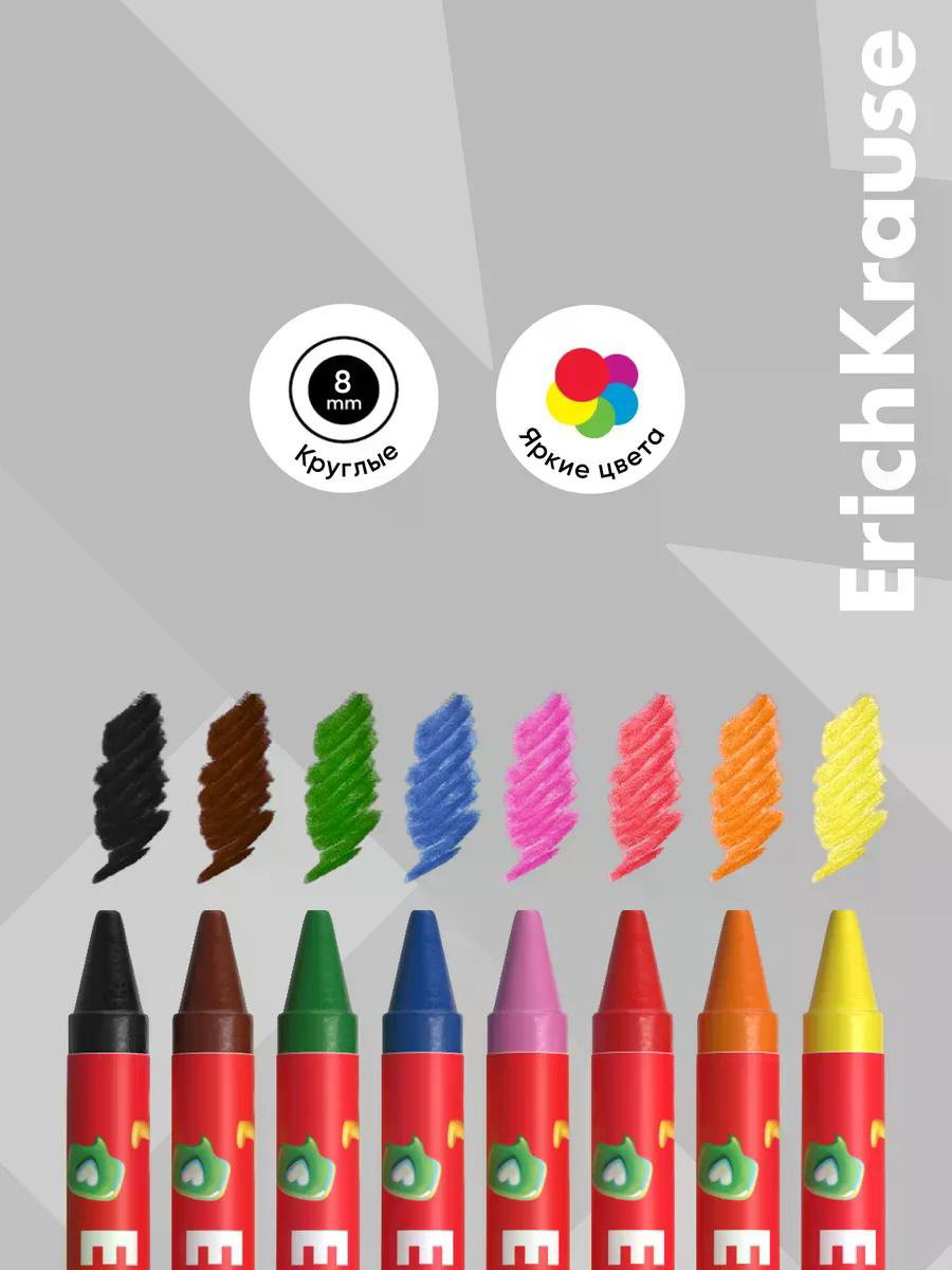 Восковые мелки 8цв, "Jolly Friends", кругл, европодвес, 12x0.9x9.9 см., ErichKrause, Китай