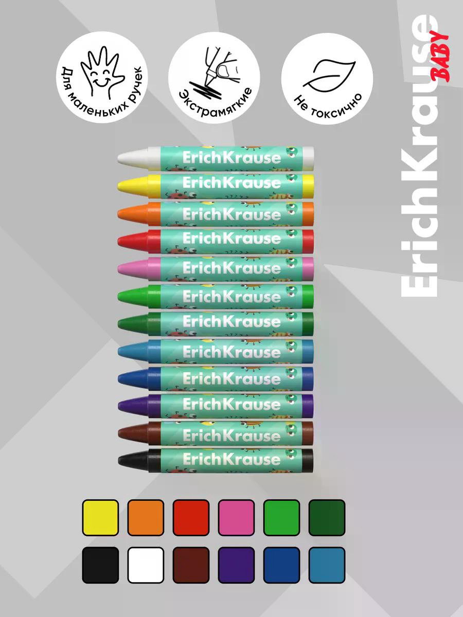 Восковые мелки 12 цв, Baby Jumbo, утолщ, кругл, европодвес, 11.8x1.3x13.3 см., ErichKrause, Китай