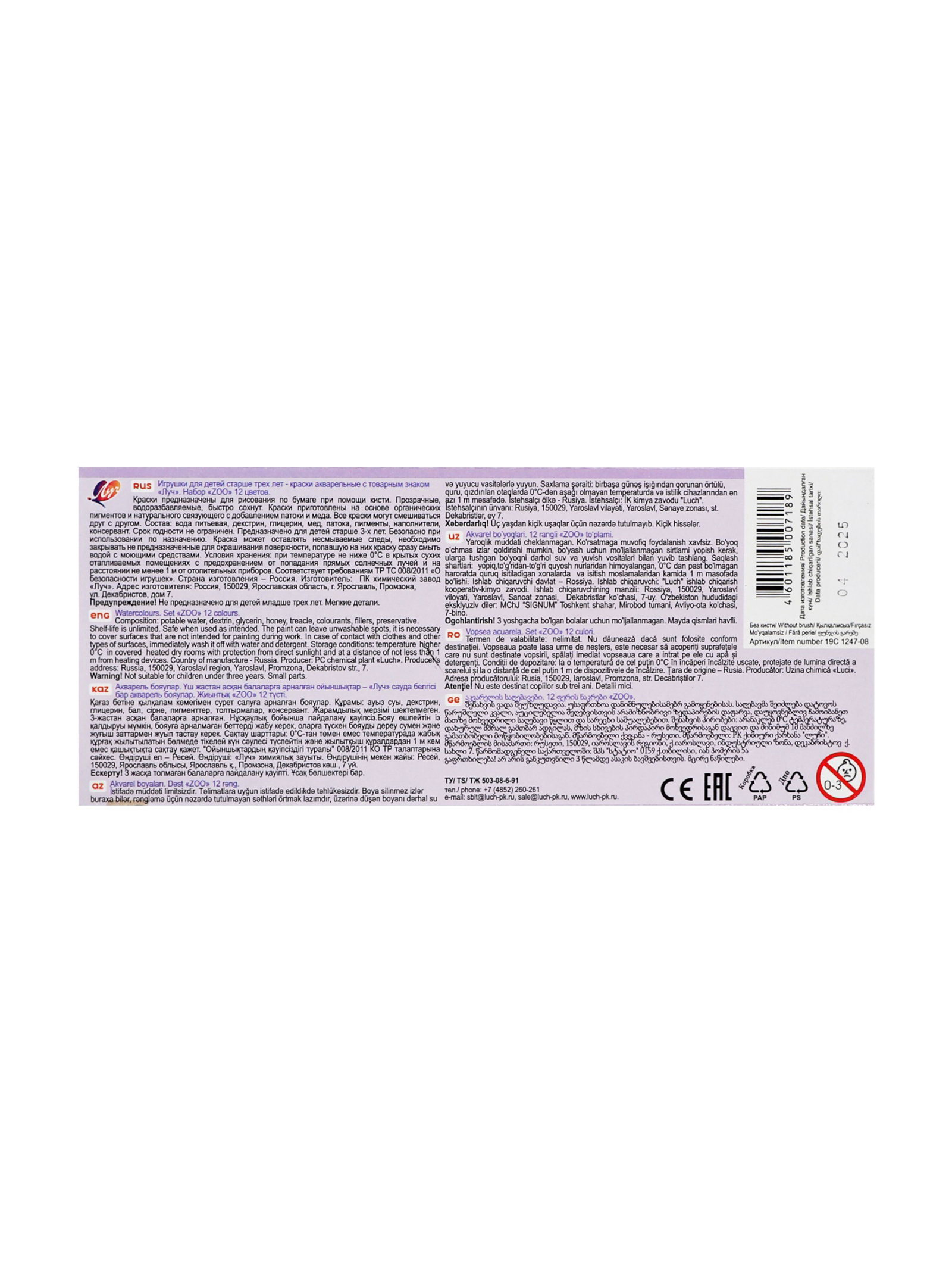 Акварель "Луч. ZOO", 12 цветов, без кисти, 17.5x7.5x1 см., Луч, Россия