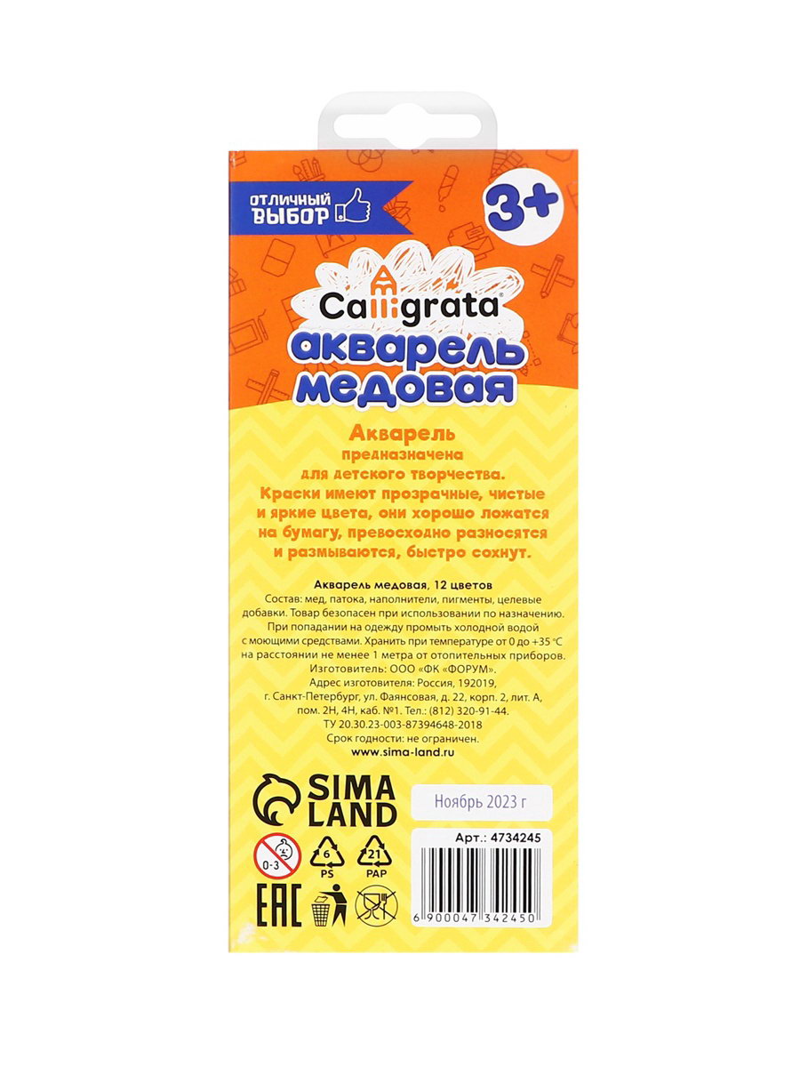 Акварель 12 цветов, без кисти, картон, МИКС, Calligrata, Россия