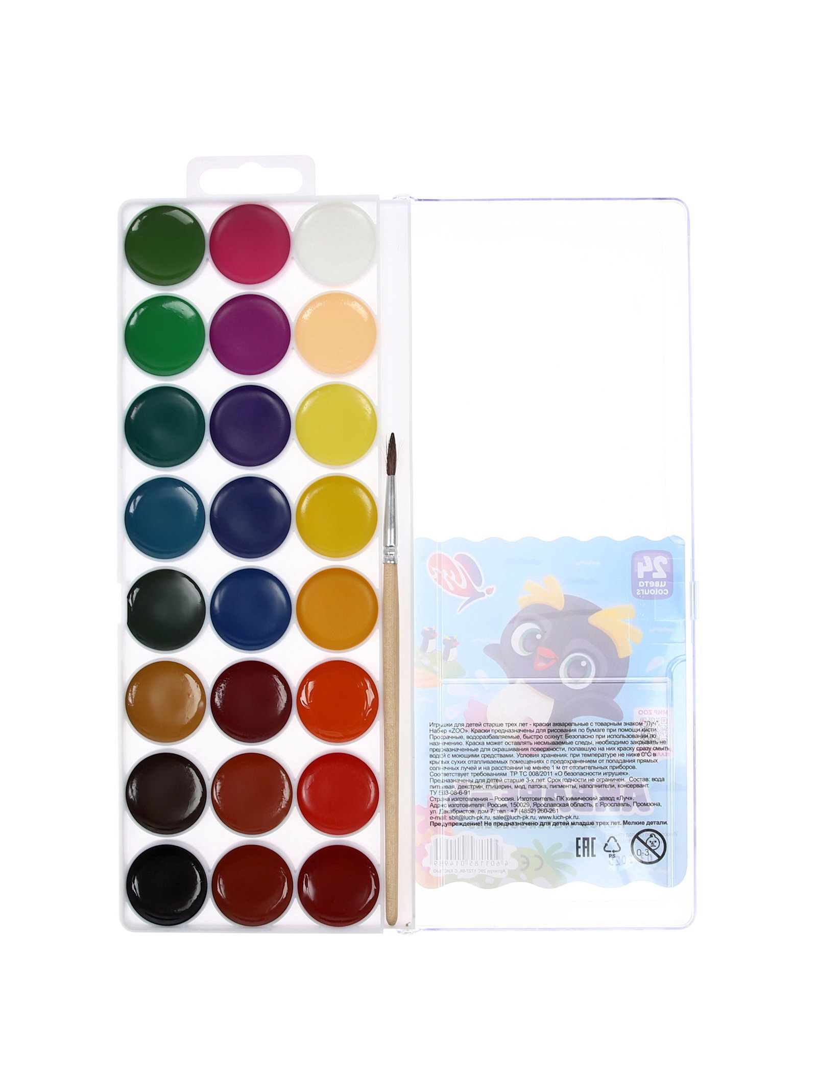 Акварель "Луч. ZOO", 24 цвета, с кистью, Луч, Россия