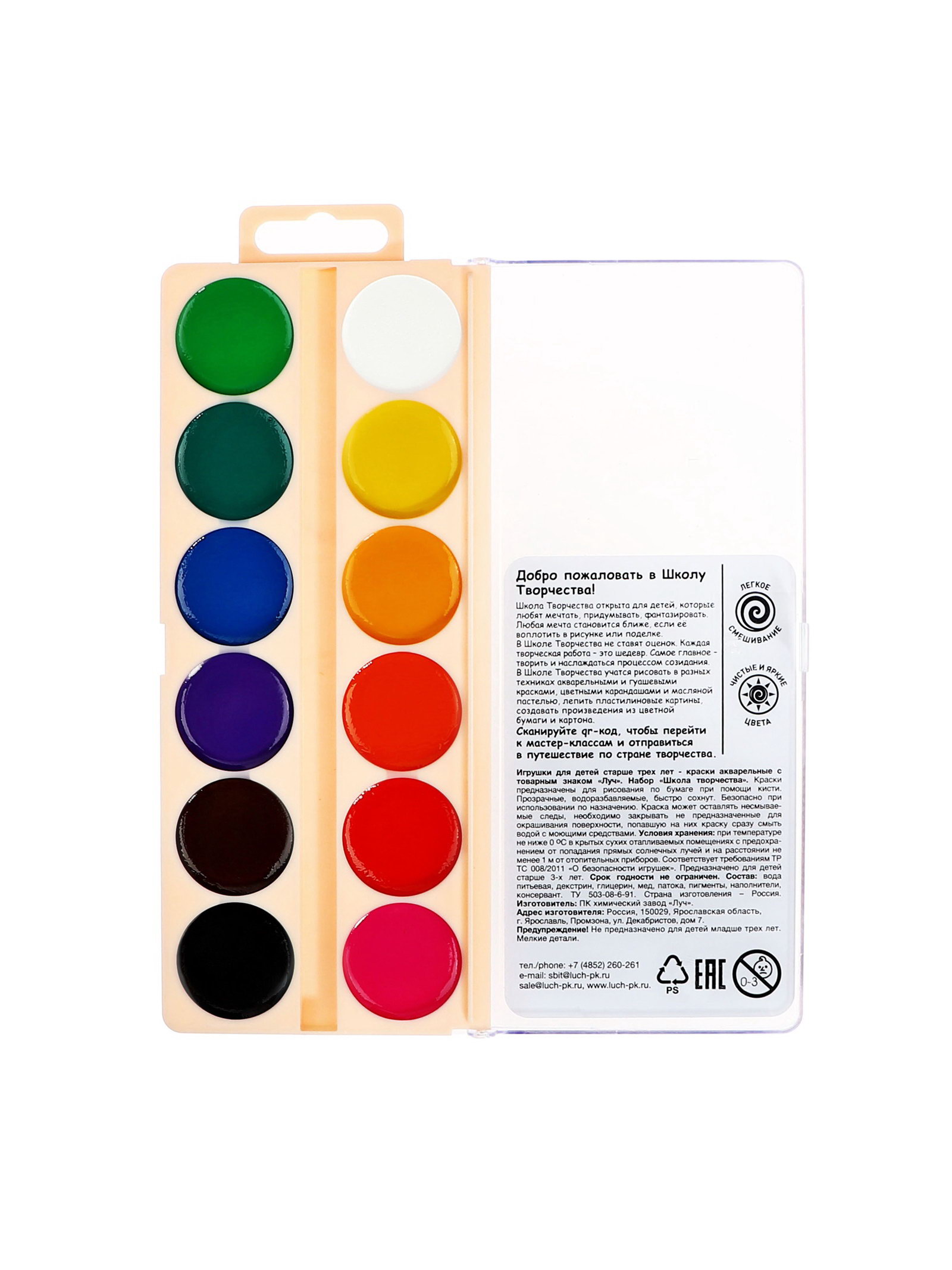 Акварель "Луч. Школа творчества", 12 цветов, без кисти, Луч, Россия