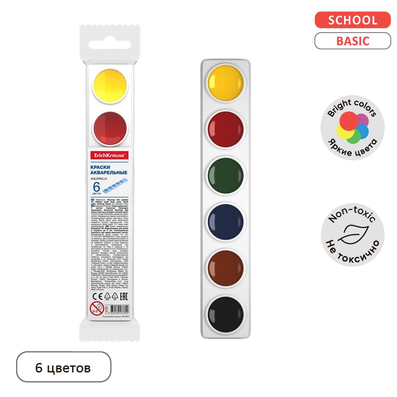 Акварель 6 цветов, без кисти, мягкий пластик, экономичная упаковка, пакет с европодвесом, ErichKrause, Россия