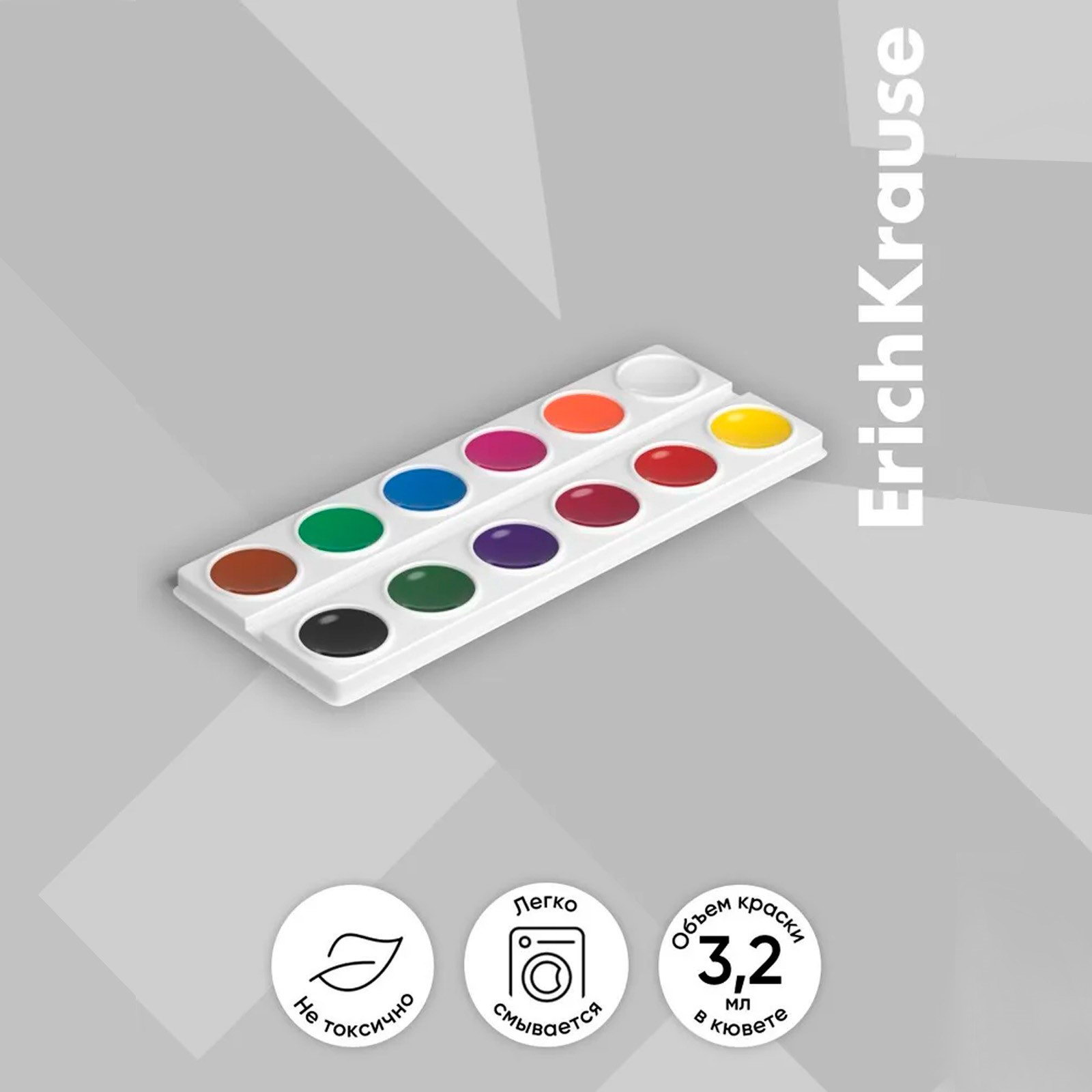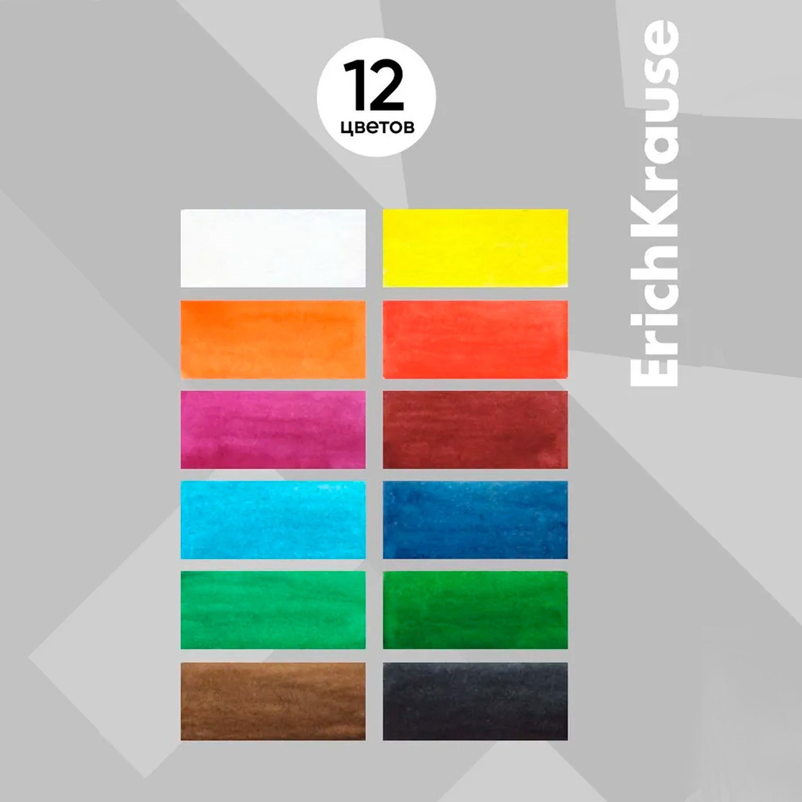 Акварель 12 цветов, в мягком пластике, без кисти, экономичная упаковка, пакет с европодвесом, ErichKrause, Россия