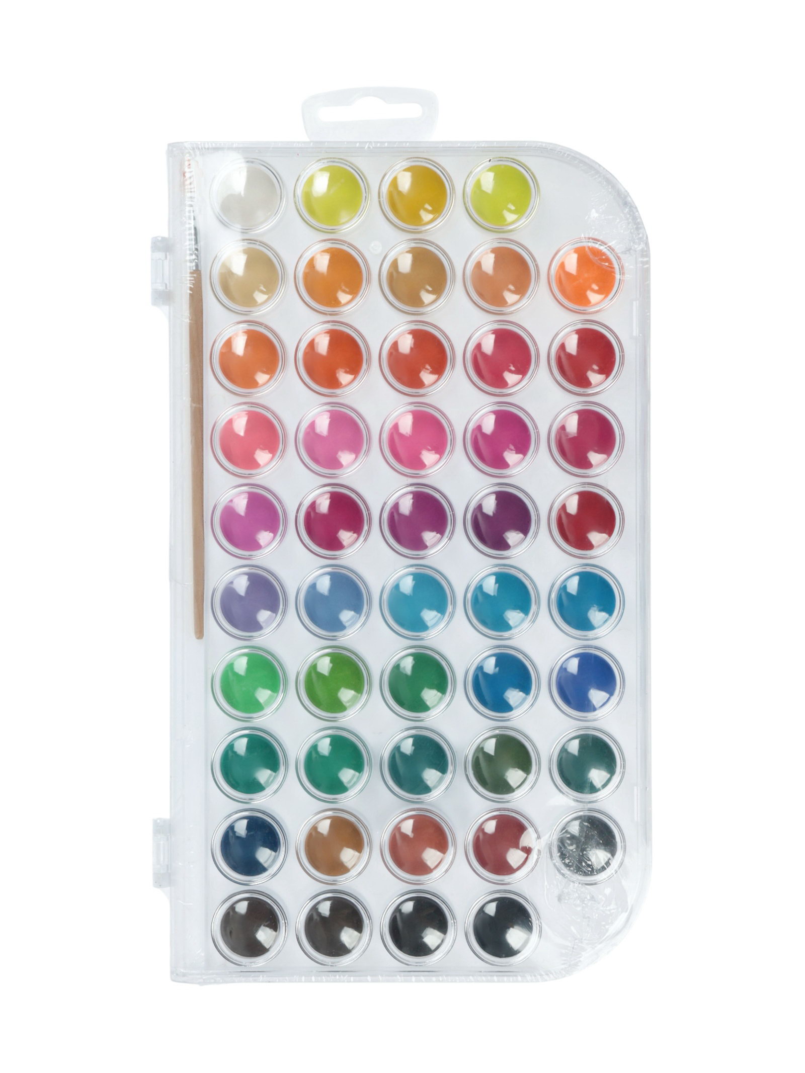 Краски акварельные 48 цветов, круглые, диаметр кюветы 23 мм, с кистью, пластиковый пенал, 23 мл., Calligrata TOP, Китай