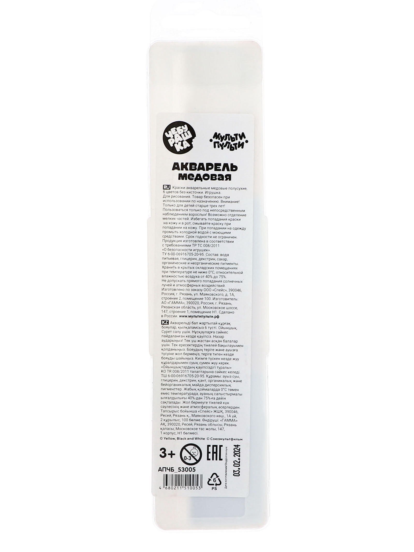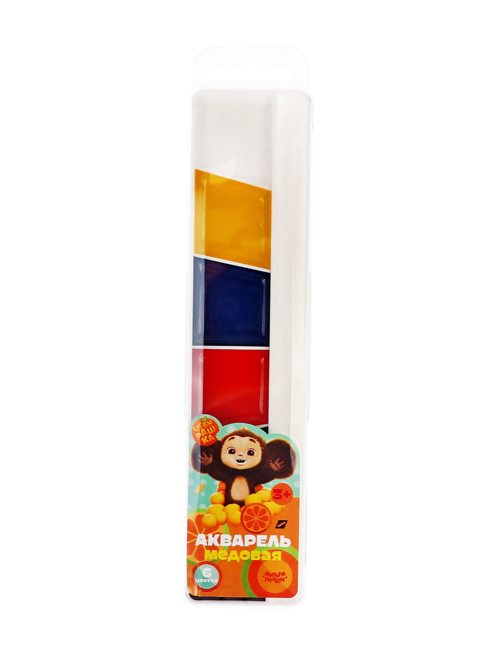 Акварель "Чебурашка", медовая, 06 цветов, без кисти, пластик, европодвес, Мульти-Пульти, Россия