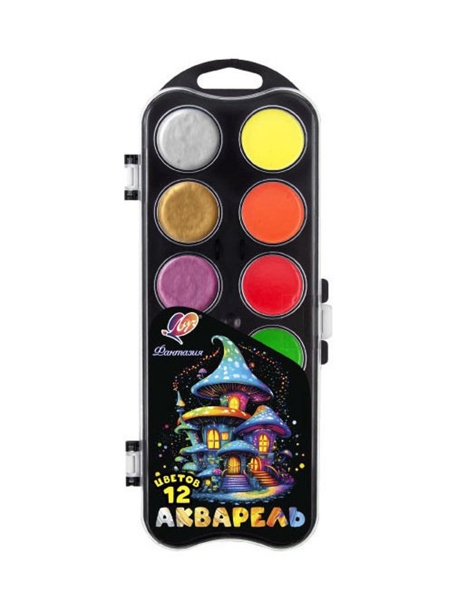 Акварель 12цв пластик "Фантазия" неон + перламут, без кисти, Луч, Россия