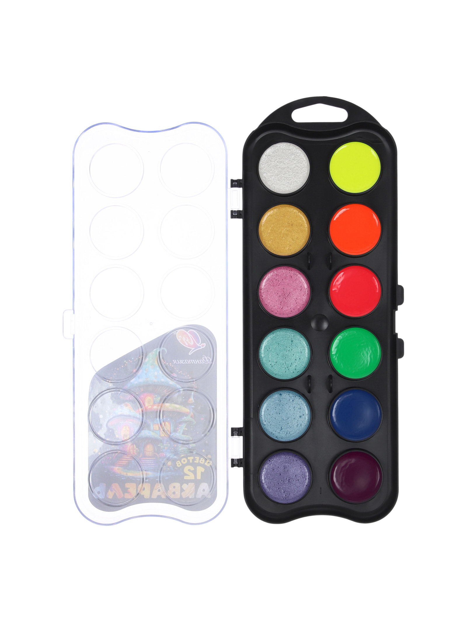 Особенности цвета: Неоновый, Перламутровый Размер упаковки: 9.5 x 1.5 x 24 см. tnved: 3213100000 Температурное ограничение: Нет Кисть: Нет Европодвес: Да Вид упаковки: Пластиковая упаковка Штрихкод на единице товара: Да Температурное ограничение транспортировки: Да Количество цветов: 12 Набор акварельных красок "Фантазия" с неоновыми и перламутровыми оттенками открывает необычную палитру для творчества. Эти цвета создают на бумаге эффекты свечения и мерцания, которые сложно получить с помощью обычной акварели. Содержимое набора