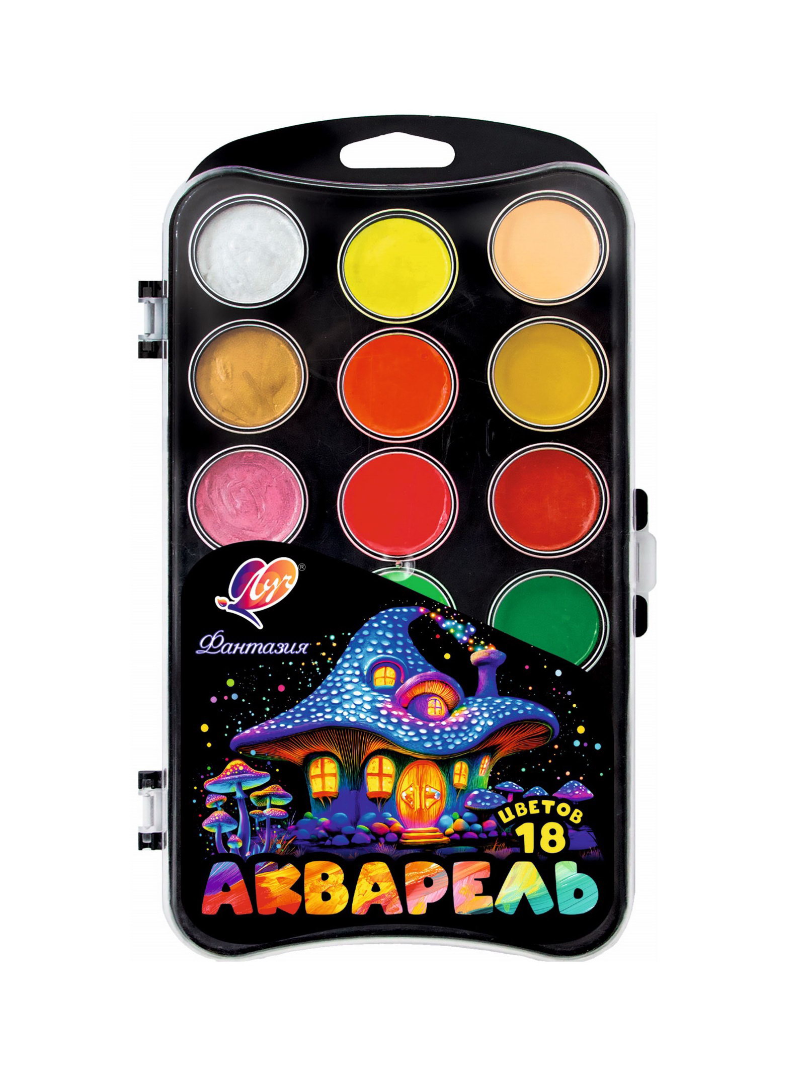 Акварель 18цв пластик "Фантазия" классич.+ неон + перламутр, без кисти, Луч, Россия