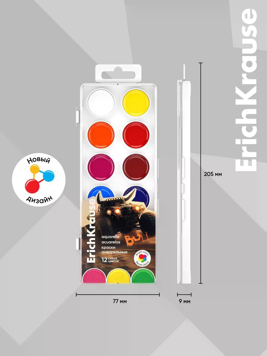 Краски акварельные 12 цв "Road Beast", 1.3x8x20.5 см., ErichKrause, Россия