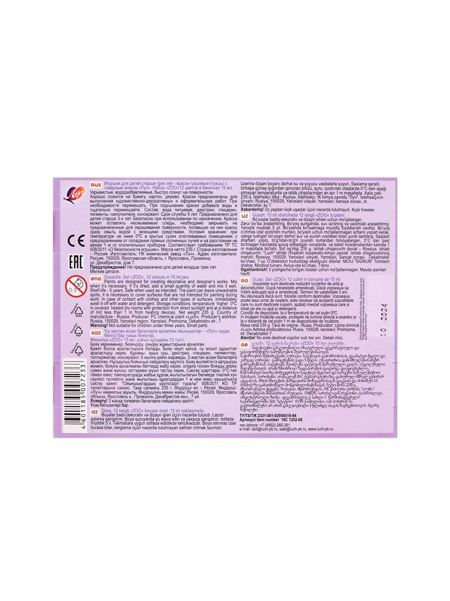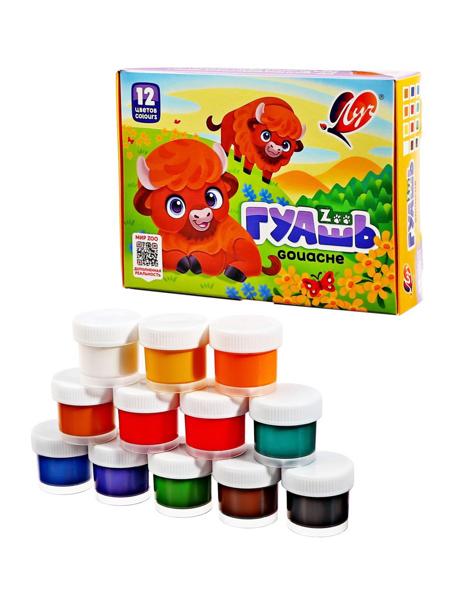 Гуашь 12 цветов x 15 мл ZOO, 17x4x12 см., Луч, Россия