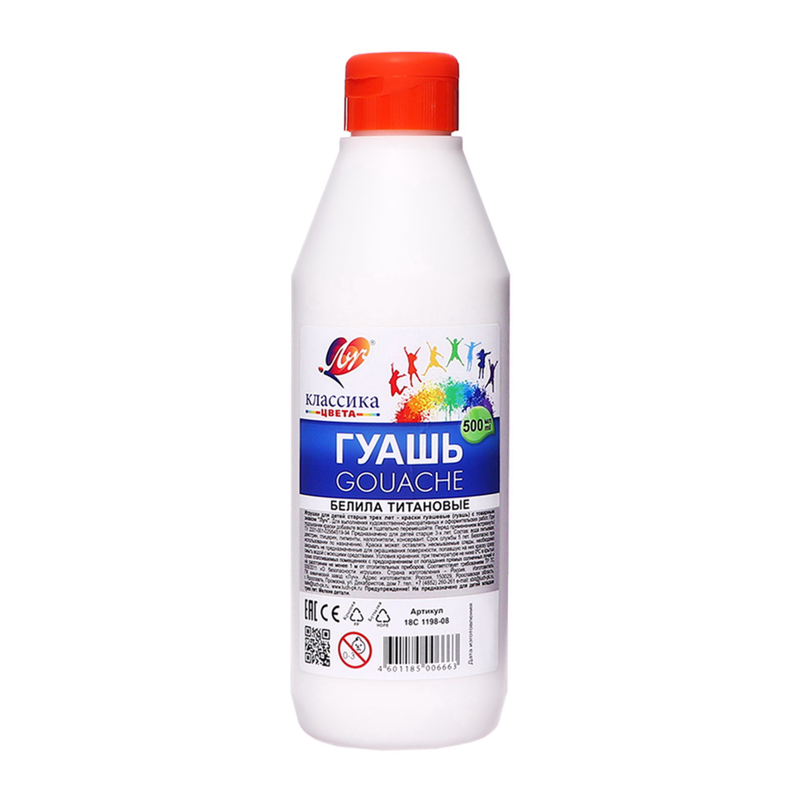 Гуашь 500 мл, белила титановые, 7x7x19 см., Луч, Россия