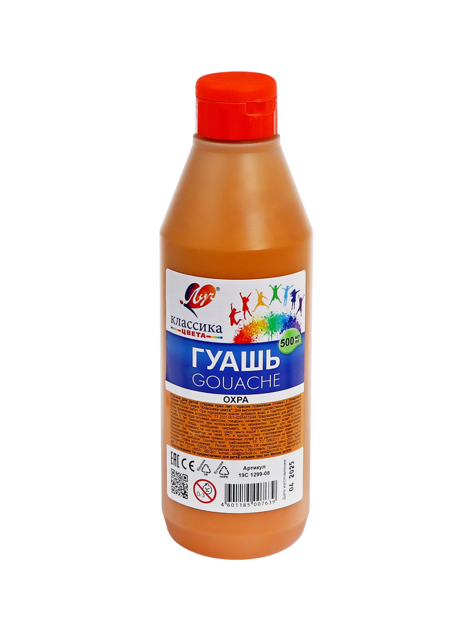 Гуашь 500 мл, охра, 7x7x9 см., Луч, Россия