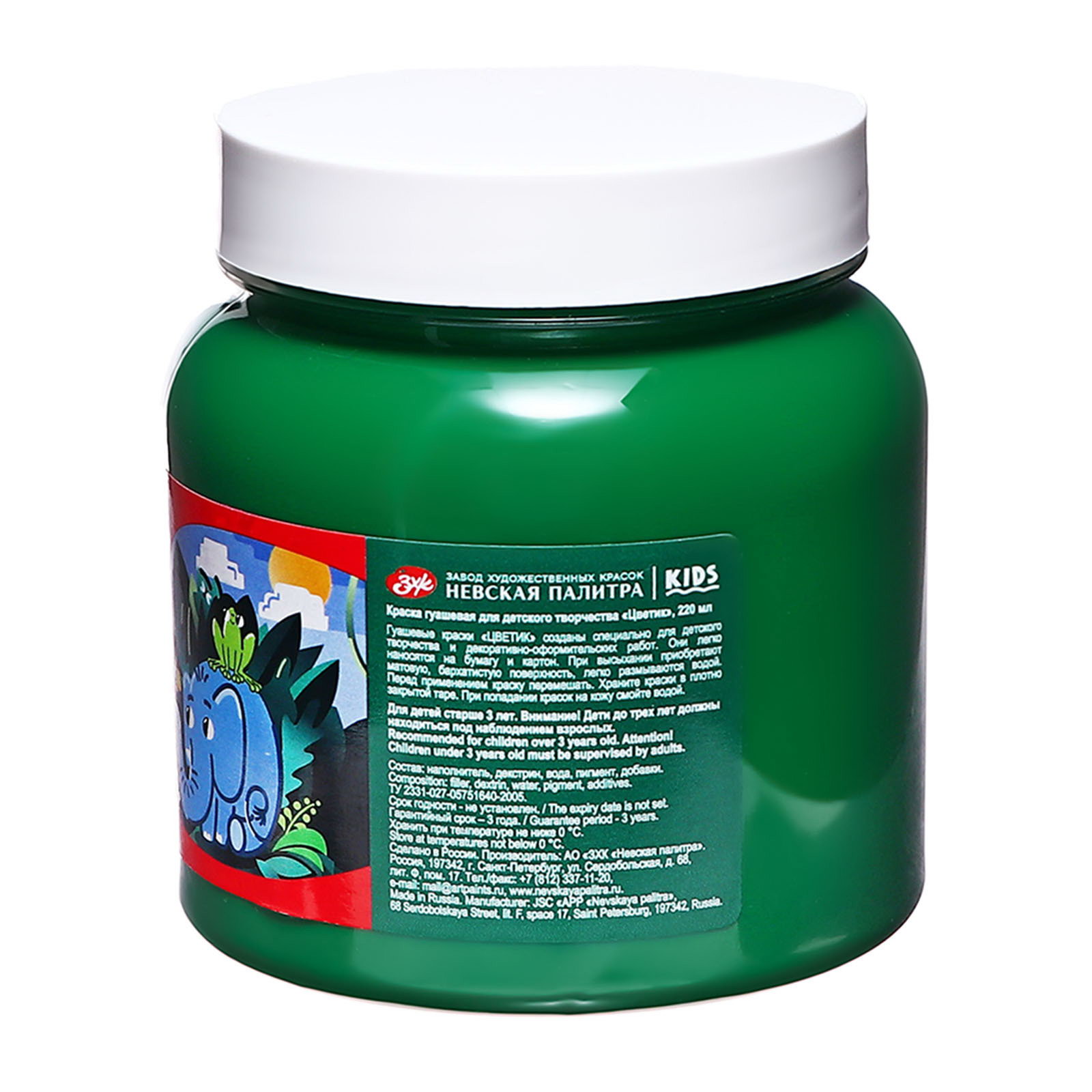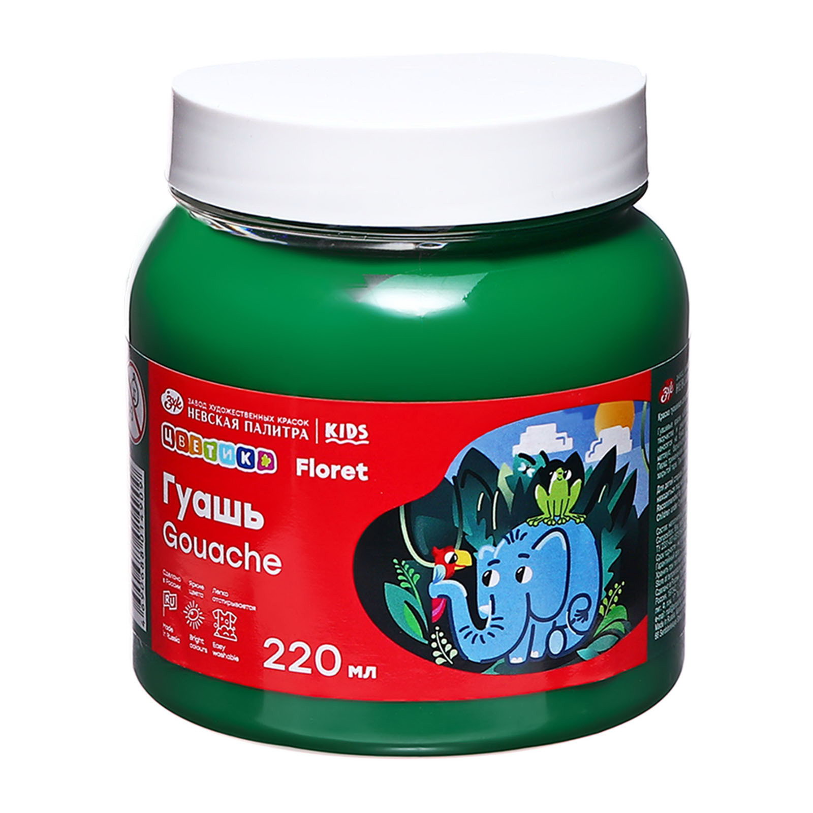 Гуашь в банке 220 мл, ЗХК "Цветик" зелёная тёмная, 220 мл., Завод художественных красок «Невская палитра», Россия