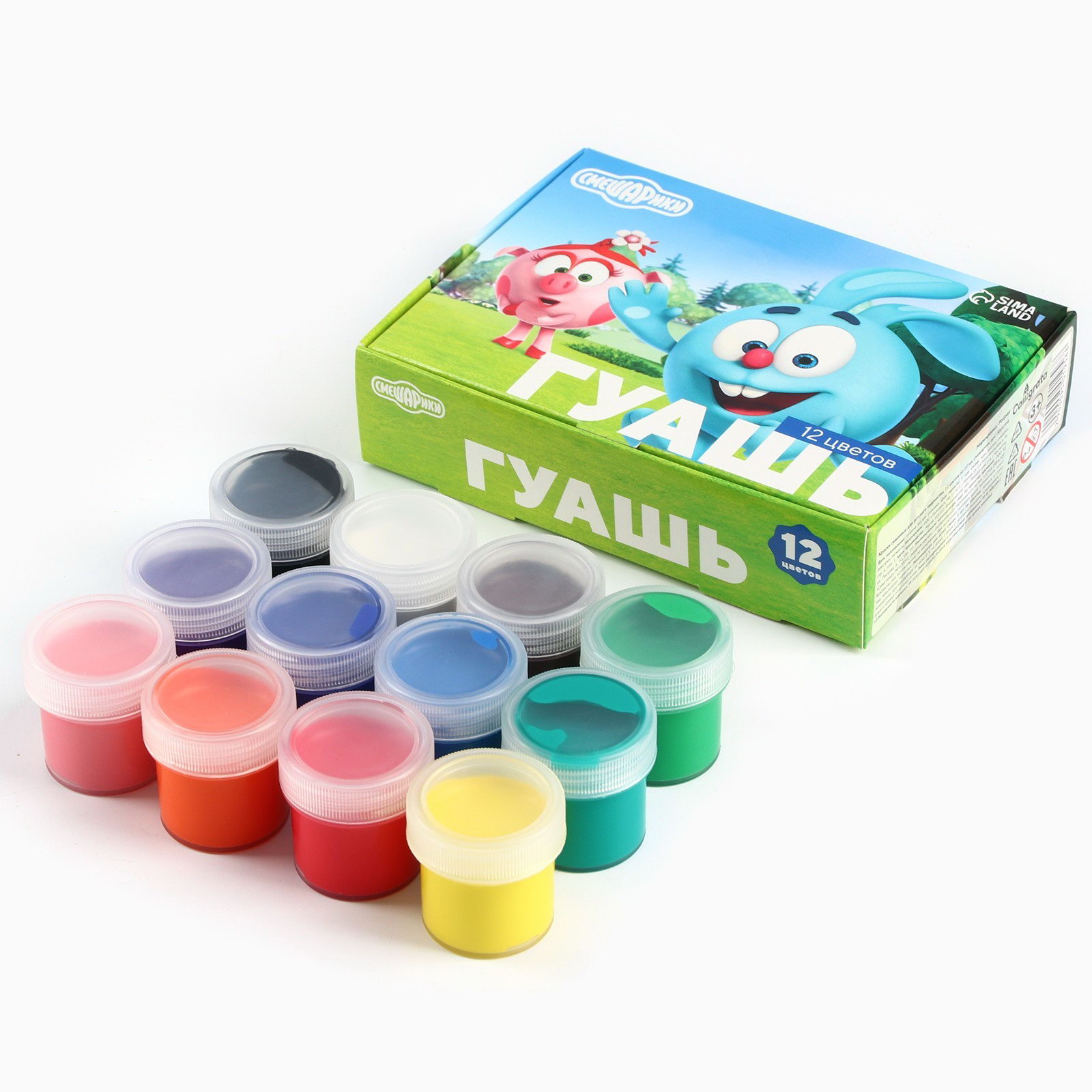 Гуашь 12 цветов по 10 мл, 10 мл., Смешарики, Россия