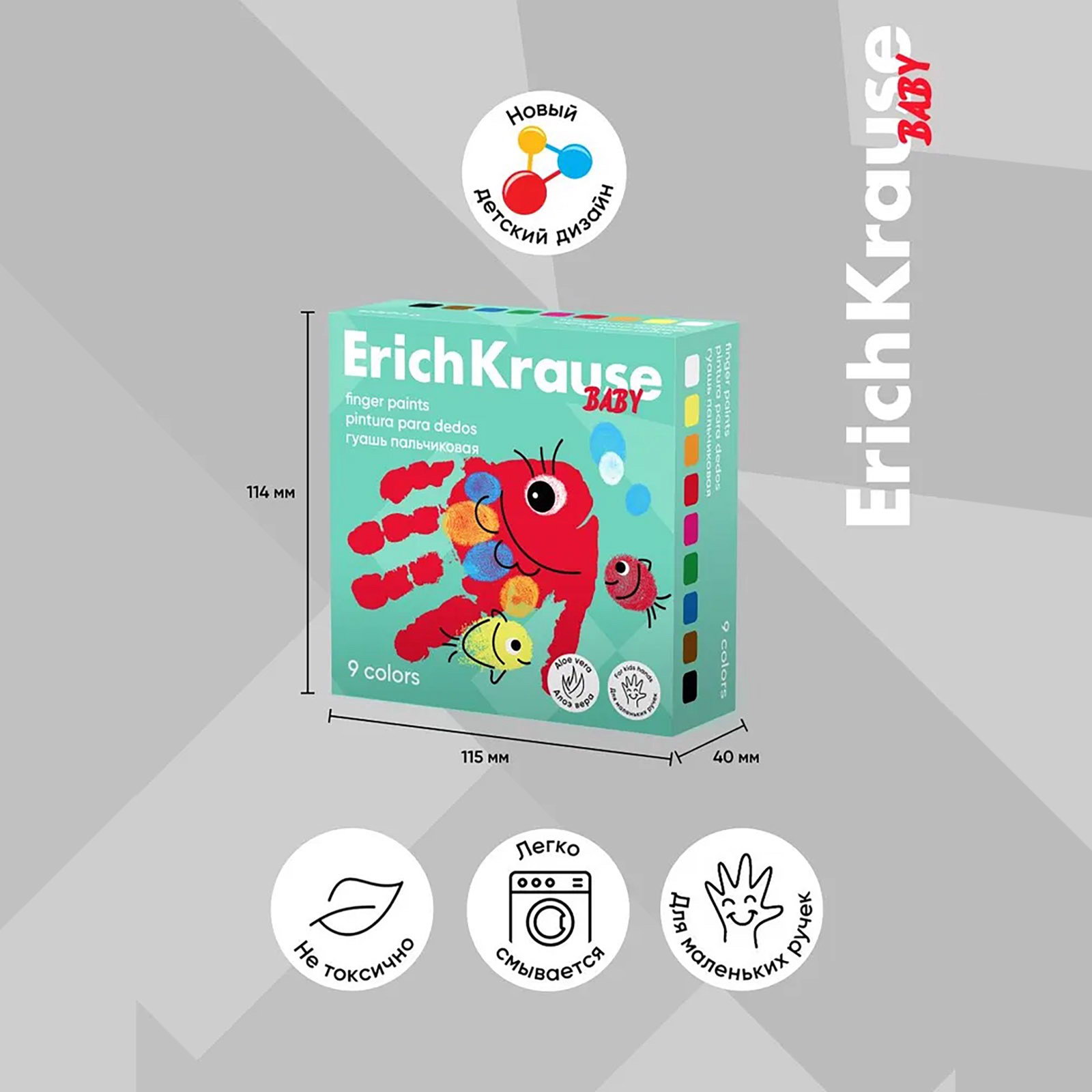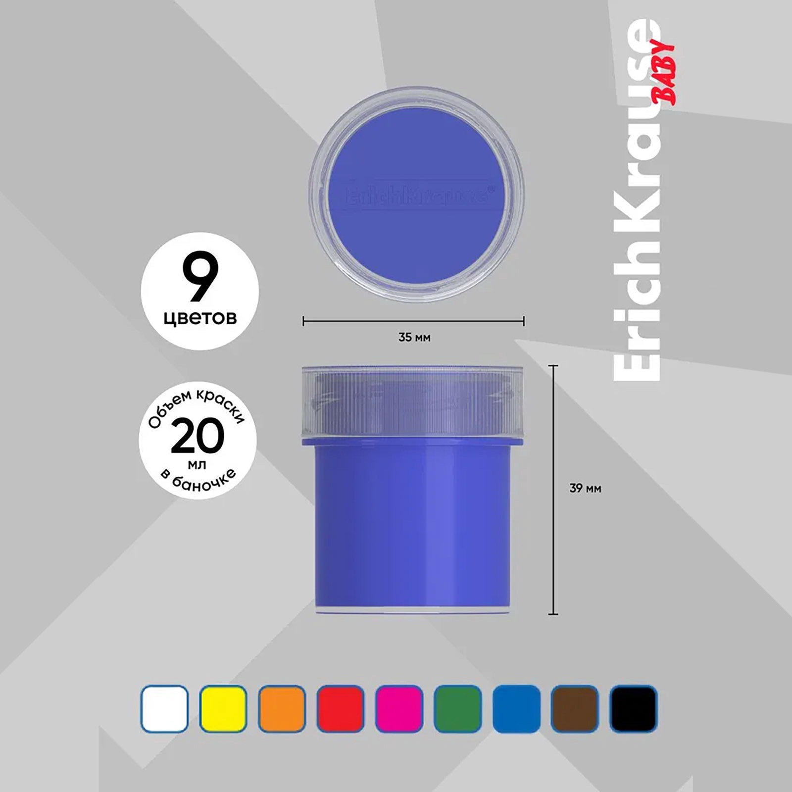 Гуашь пальчиковая, 9 цветов x 20 мл, "Baby", с Алоэ Вера, 4x11.5x11.7 см., ErichKrause, Россия