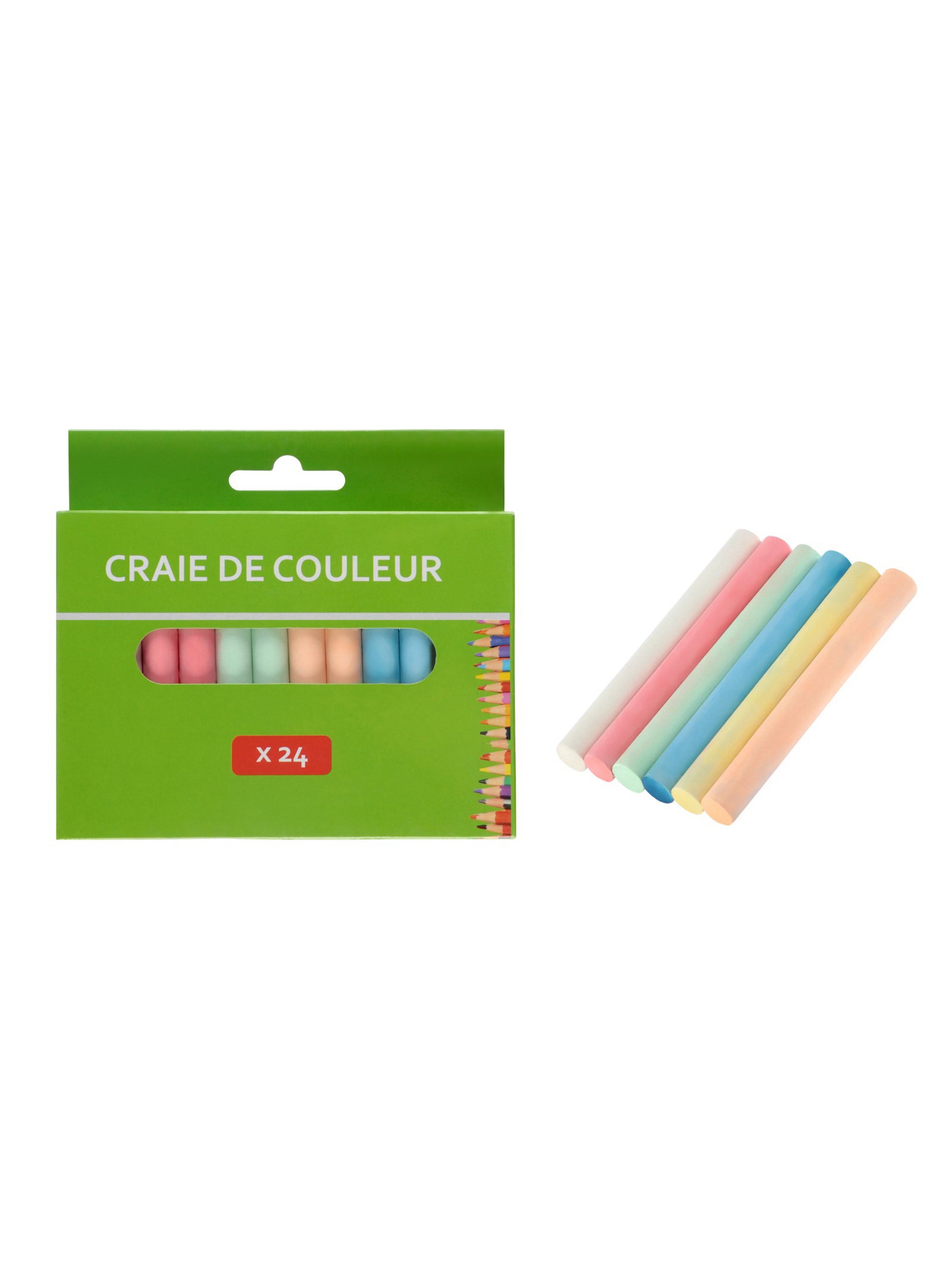 Мел школьный цветной, 6 цветов, круглый беспыльный, 24 штуки, в картонной коробке, 1.2x1.2x10 см., Calligrata, Китай