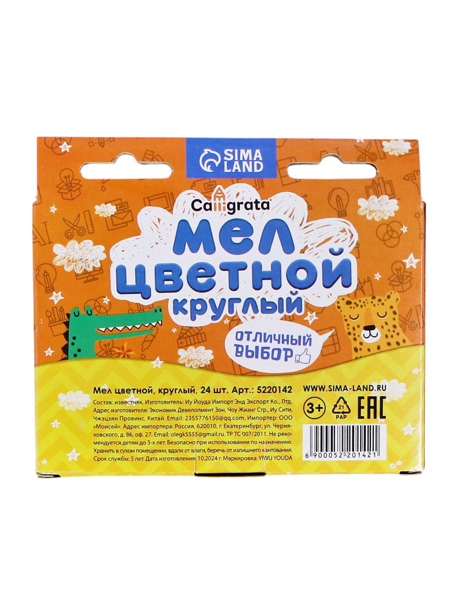 Мел школьный цветной, 6 цветов, круглый беспыльный, 24 штуки, в картонной коробке, 1.2x1.2x10 см., Calligrata, Китай