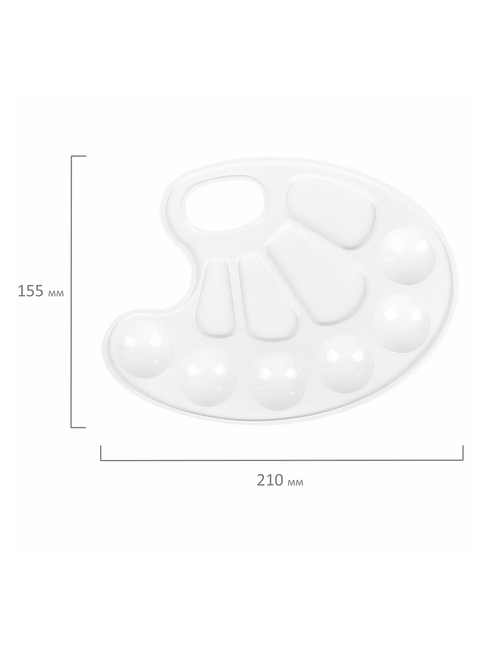 Размер упаковки: 21 x 0.5 x 15.5 см. Реестр Минпромторга: Нет tnved: 3926100000 Температурное ограничение: Нет Форма: Овальная Европодвес: Нет Штрихкод на единице товара: Да Температурное ограничение транспортировки: Нет Предназначена для смешивания красок в процессе рисования. Доступная цена. Классическая форма: 6 отделений для красок и 4 отделения для смешивания смешивания красок и получения новых тонов. Оптимальный размер палитры 228 x 170 мм Легкая и практичная с отверстием для руки удобна в использовании и является незаменимой и для начинающих художников. Безупречная гладкая поверхность. Ровная форма изделия. Легко отмывается после использования. | ||