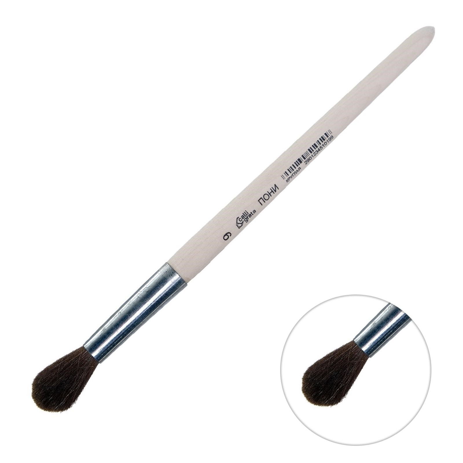 Кисть для рисования, пони, № 9, круглая, деревянная ручка, Calligrata, Россия