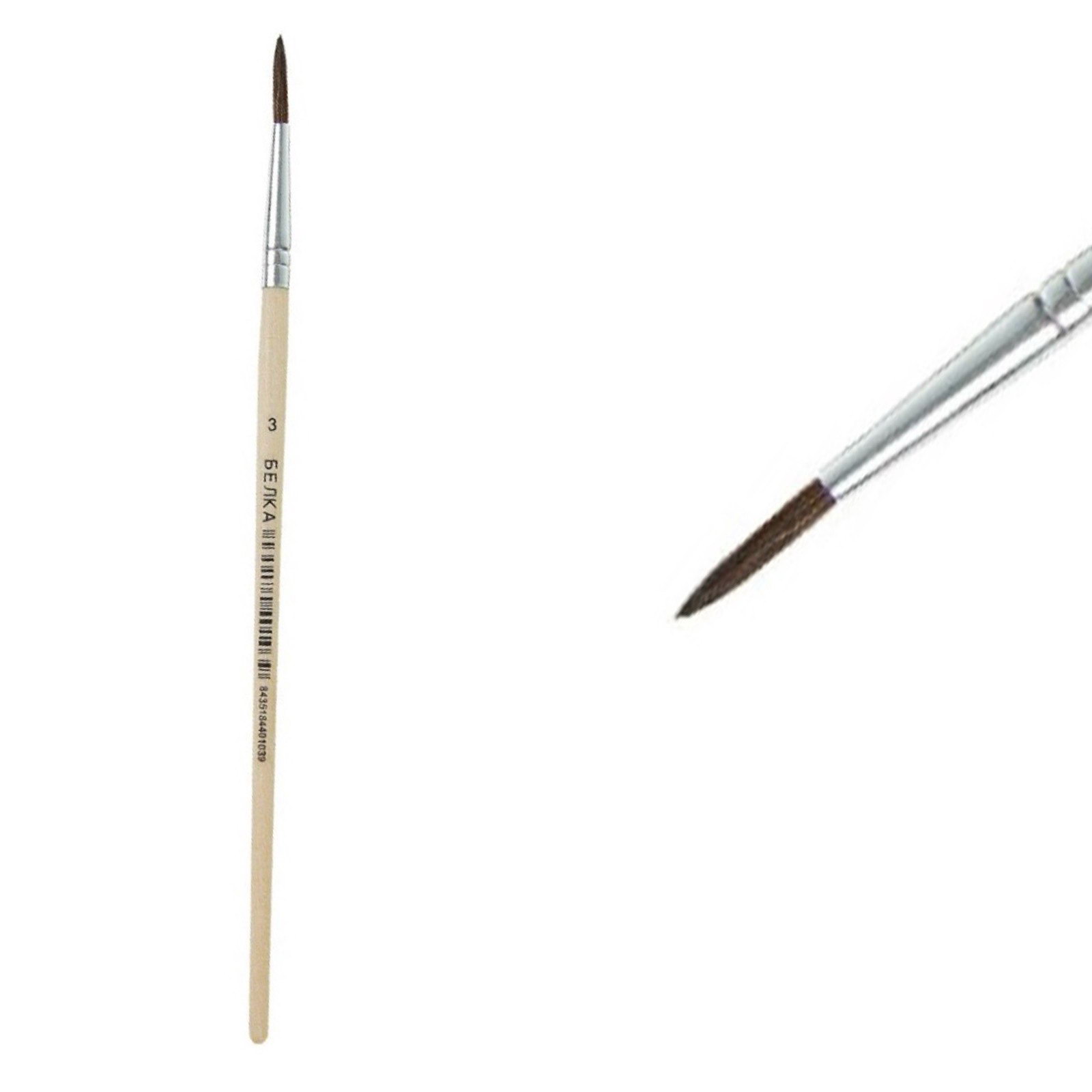 Кисть для рисования, белка, № 3, круглая, деревянная ручка, международный размер, Calligrata, Китай