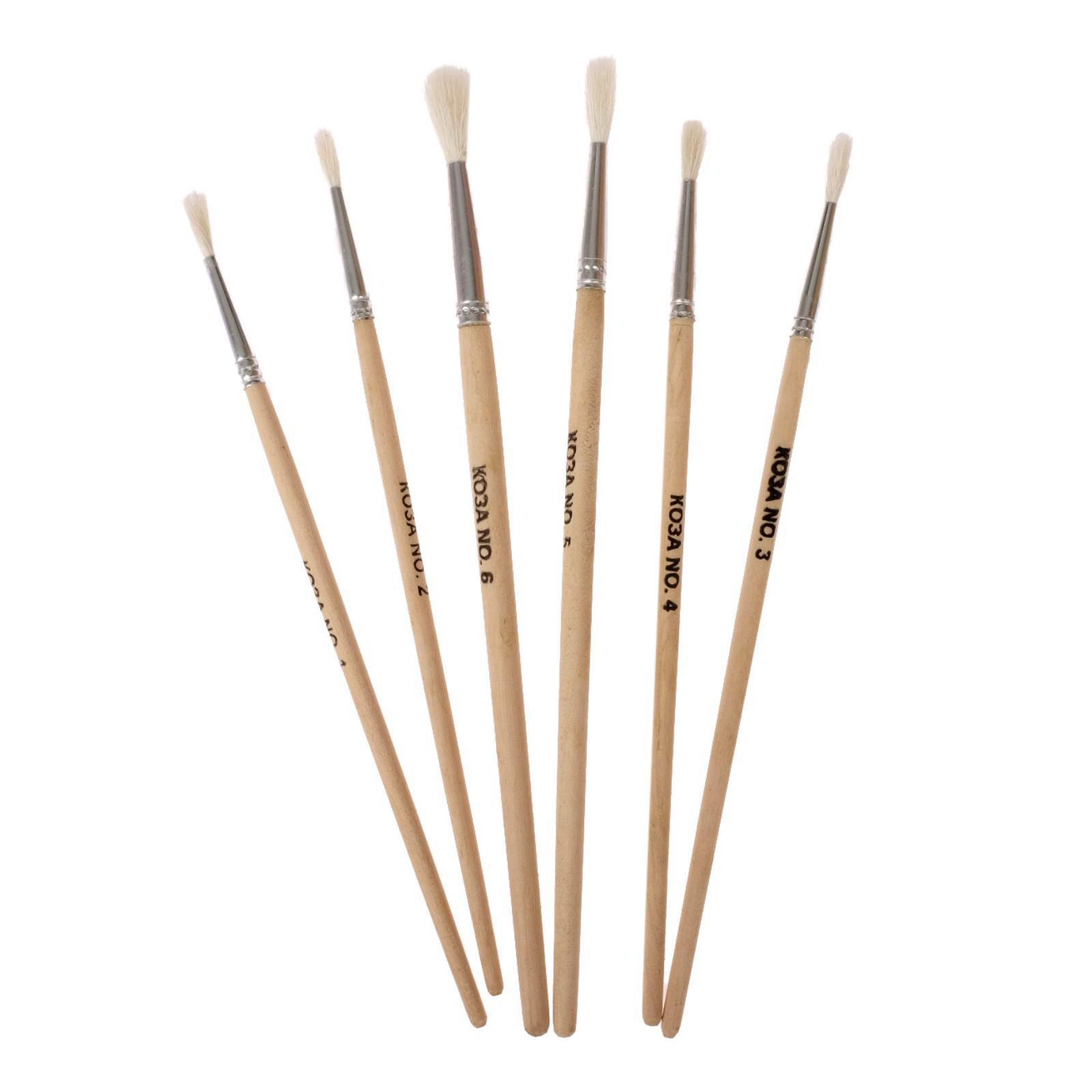 Набор кистей для рисования, коза, 6 штук, № 1, 2, 3, 4, 5, 6, круглые, деревянная ручка, международный размер, Calligrata, Китай