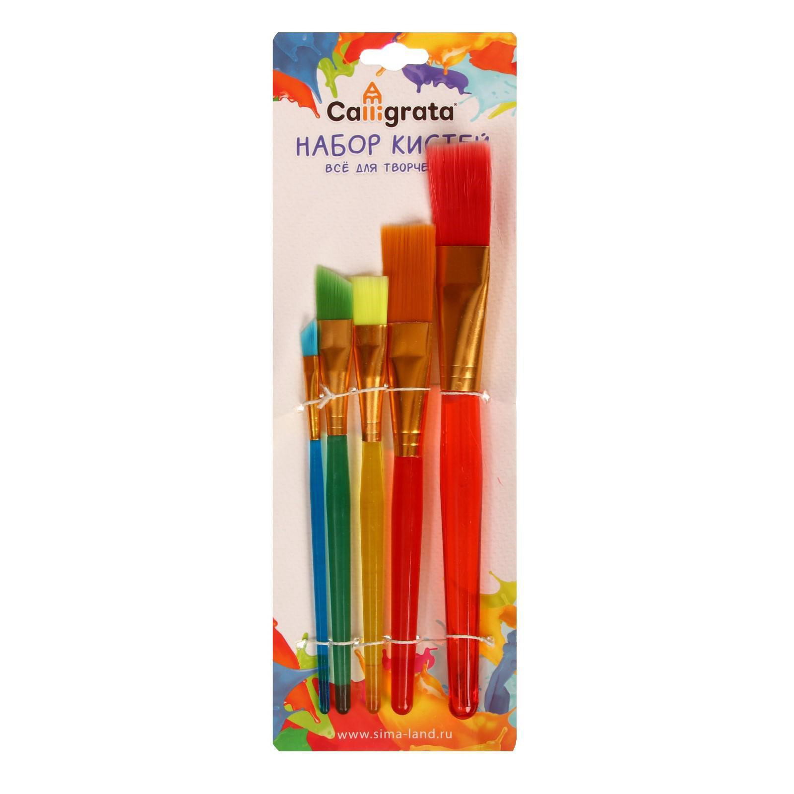 Набор кистей для рисования, нейлон, 5 штук, "Радуга", плоские, большие, международный размер, Calligrata, Китай