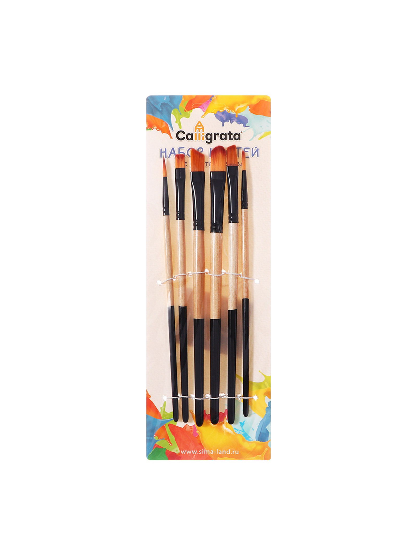 Набор кистей нейлон 6 штук: 2 круглые, 4 плоские, Calligrata, Китай
