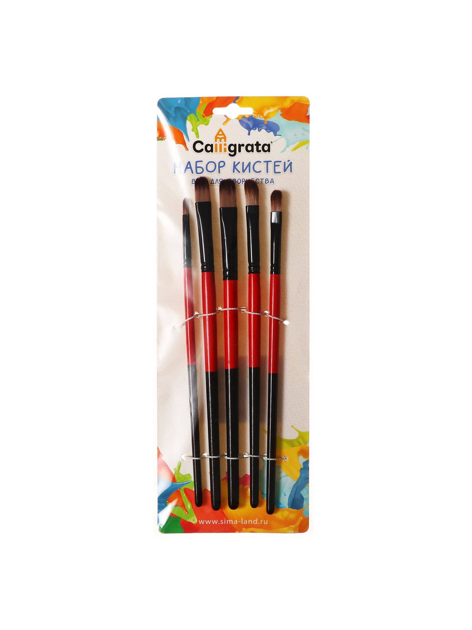 Набор кистей для рисования, нейлон, 5 штук, плоские, закругленные, деревянная ручка, международный размер, Calligrata, Китай