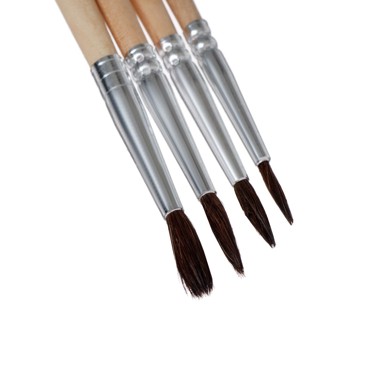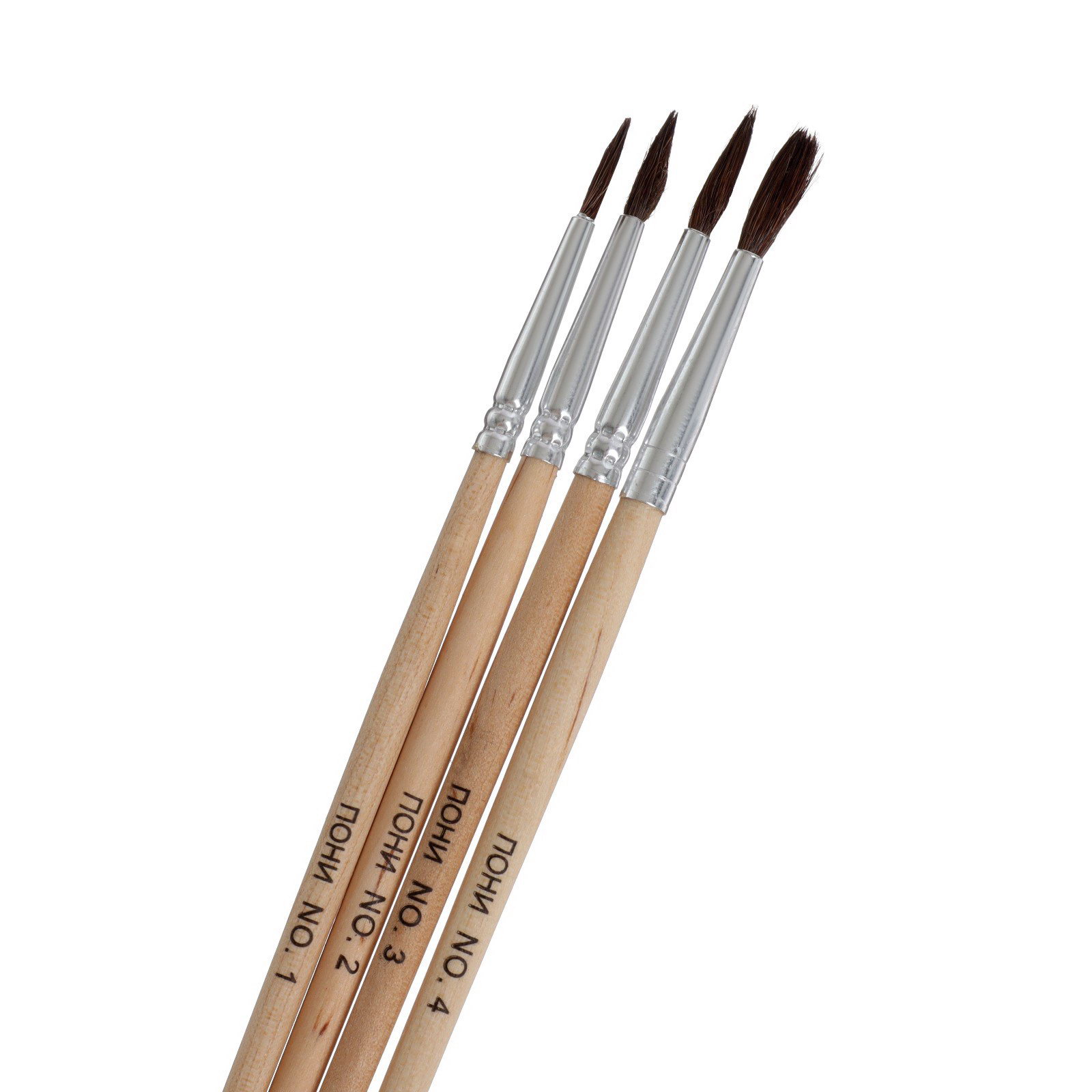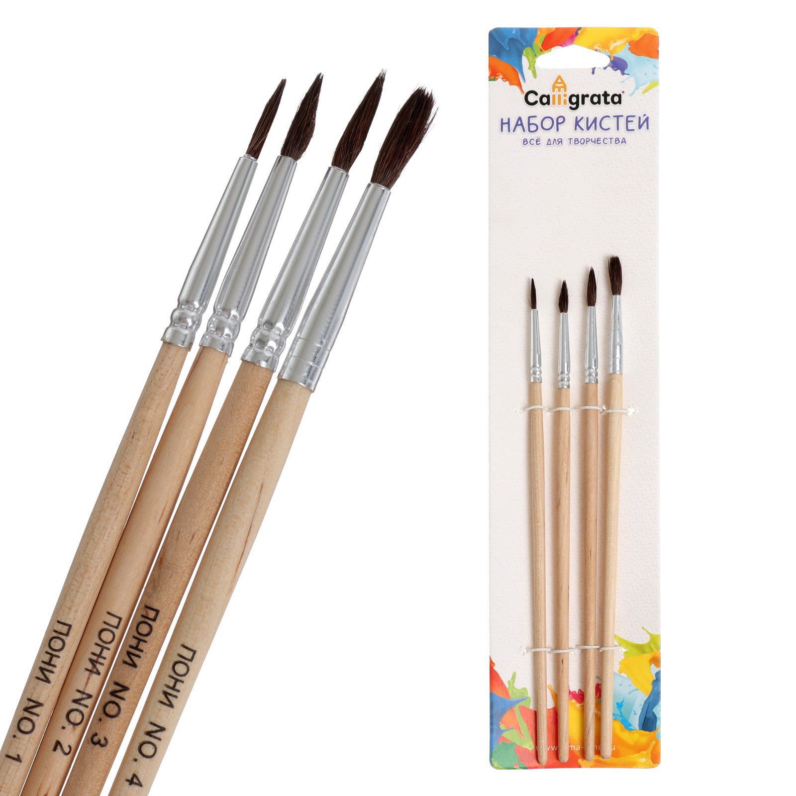 Набор кистей для рисования, пони, 4 штуки: № 1, 2, 3, 4, круглые, деревянная ручка, международный размер, 7x0.8x21 см., Calligrata, Китай