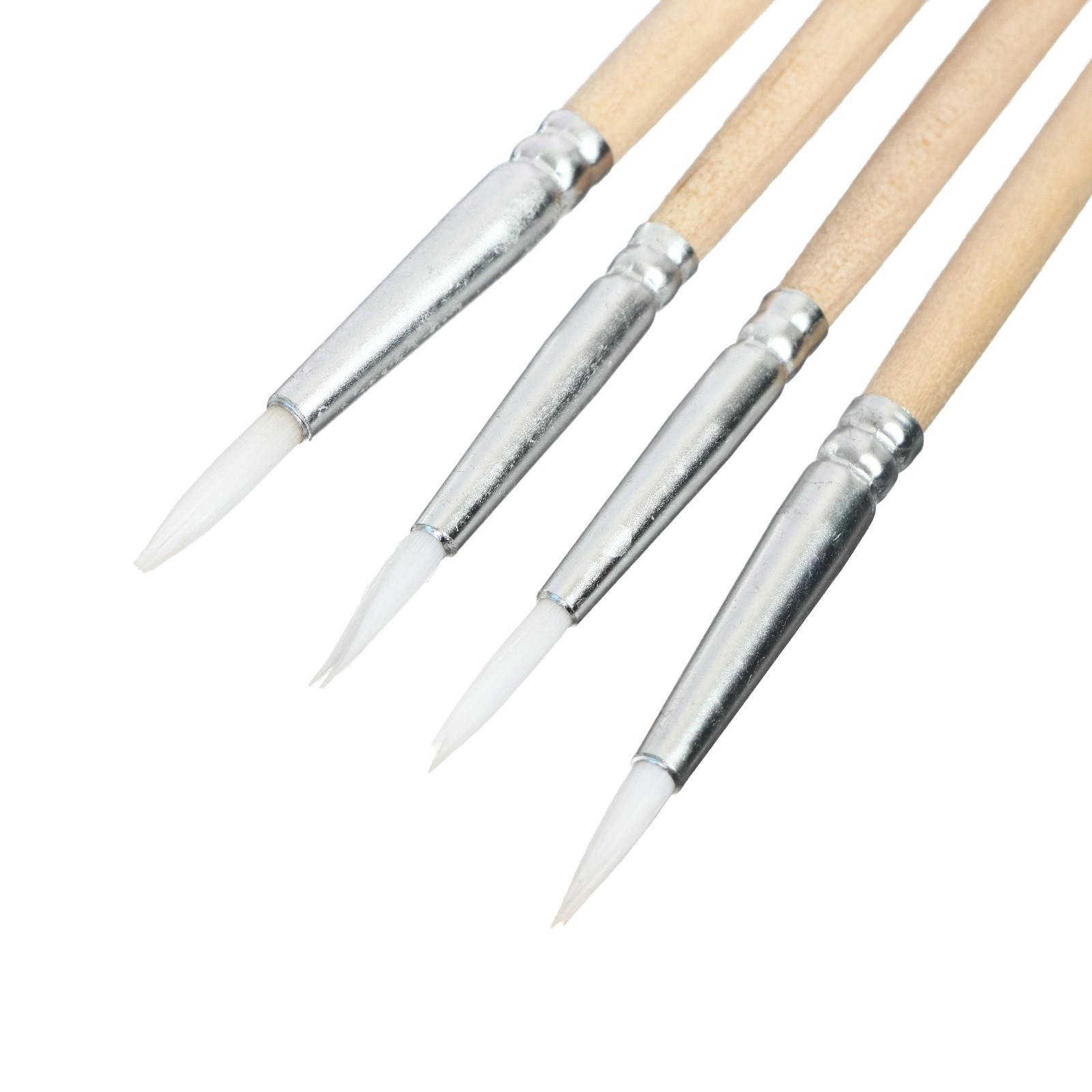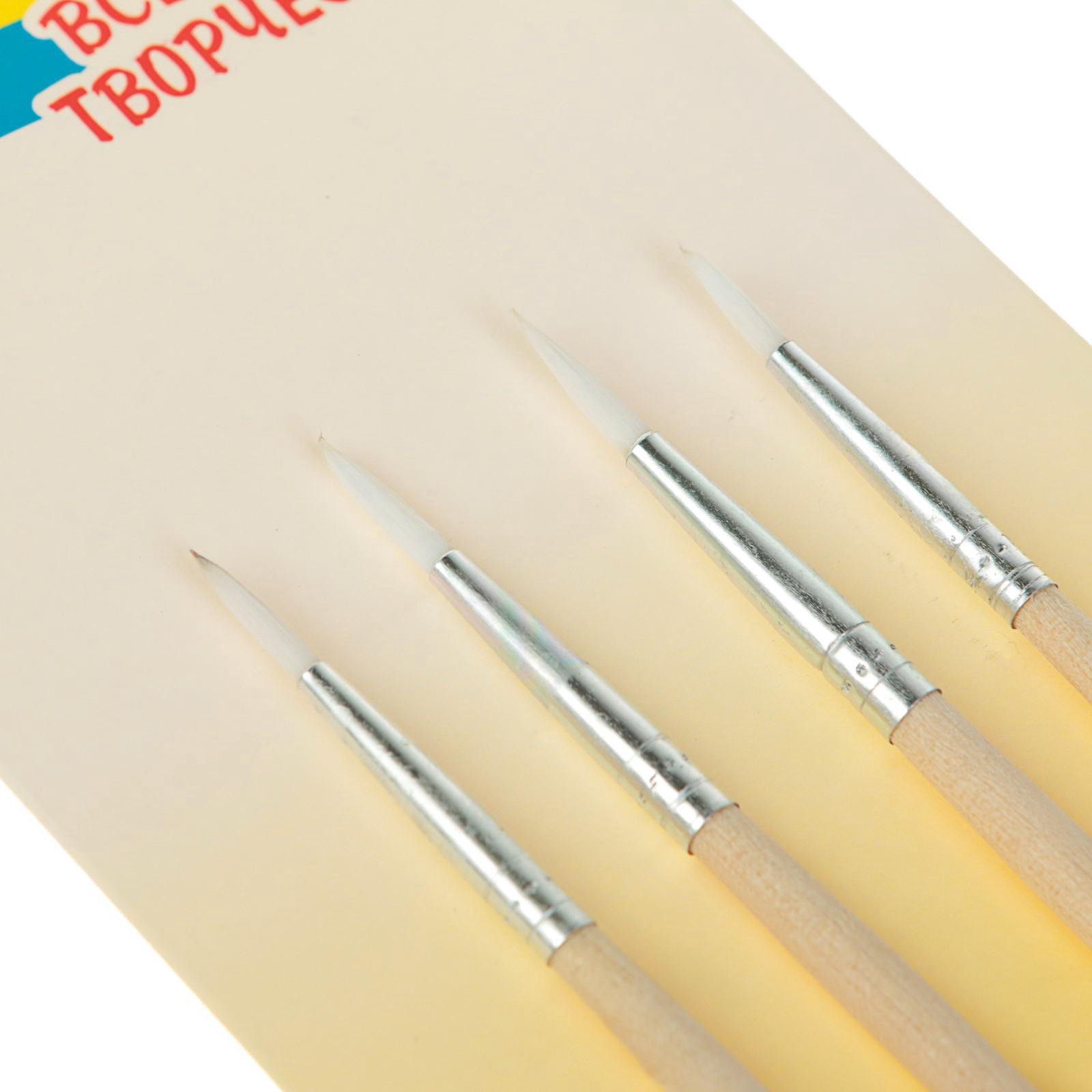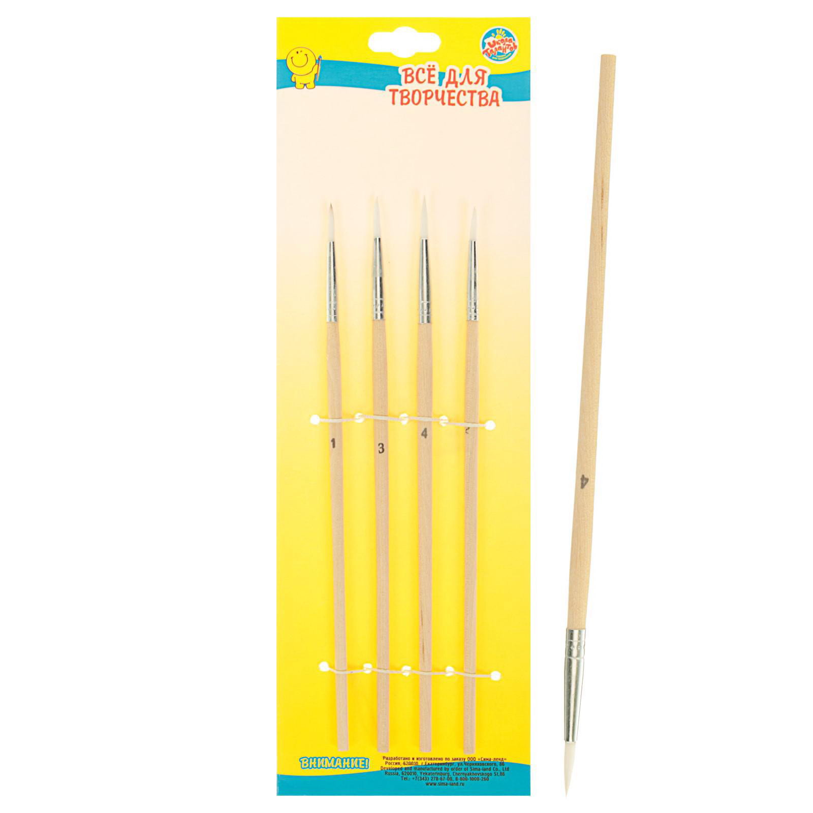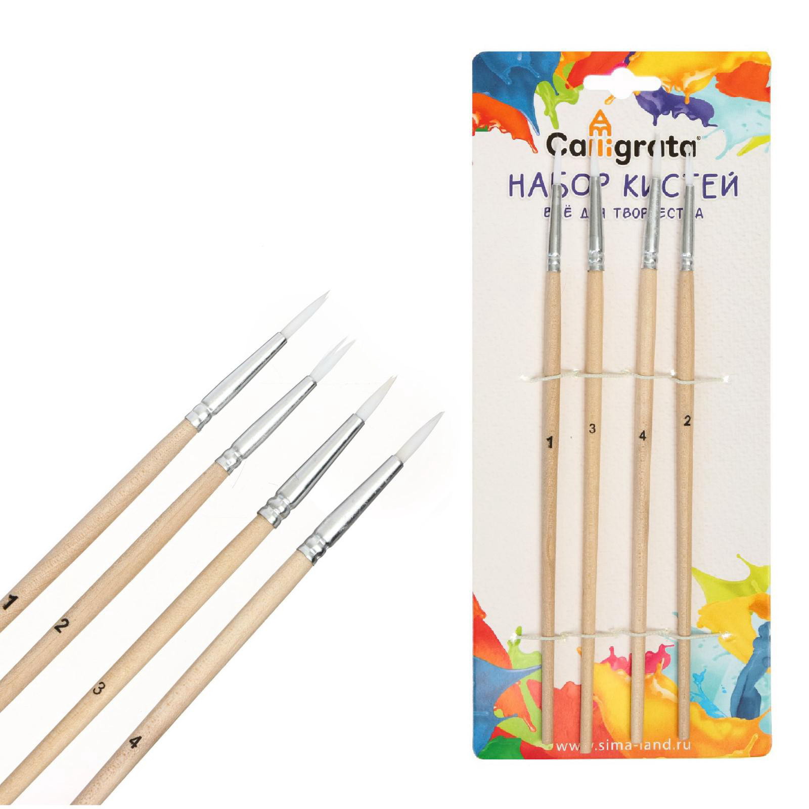 Набор кистей для рисования, щетина, 4 штуки: № 1, 2, 3, 4, круглые, деревянная ручка, международный размер, Calligrata, Китай