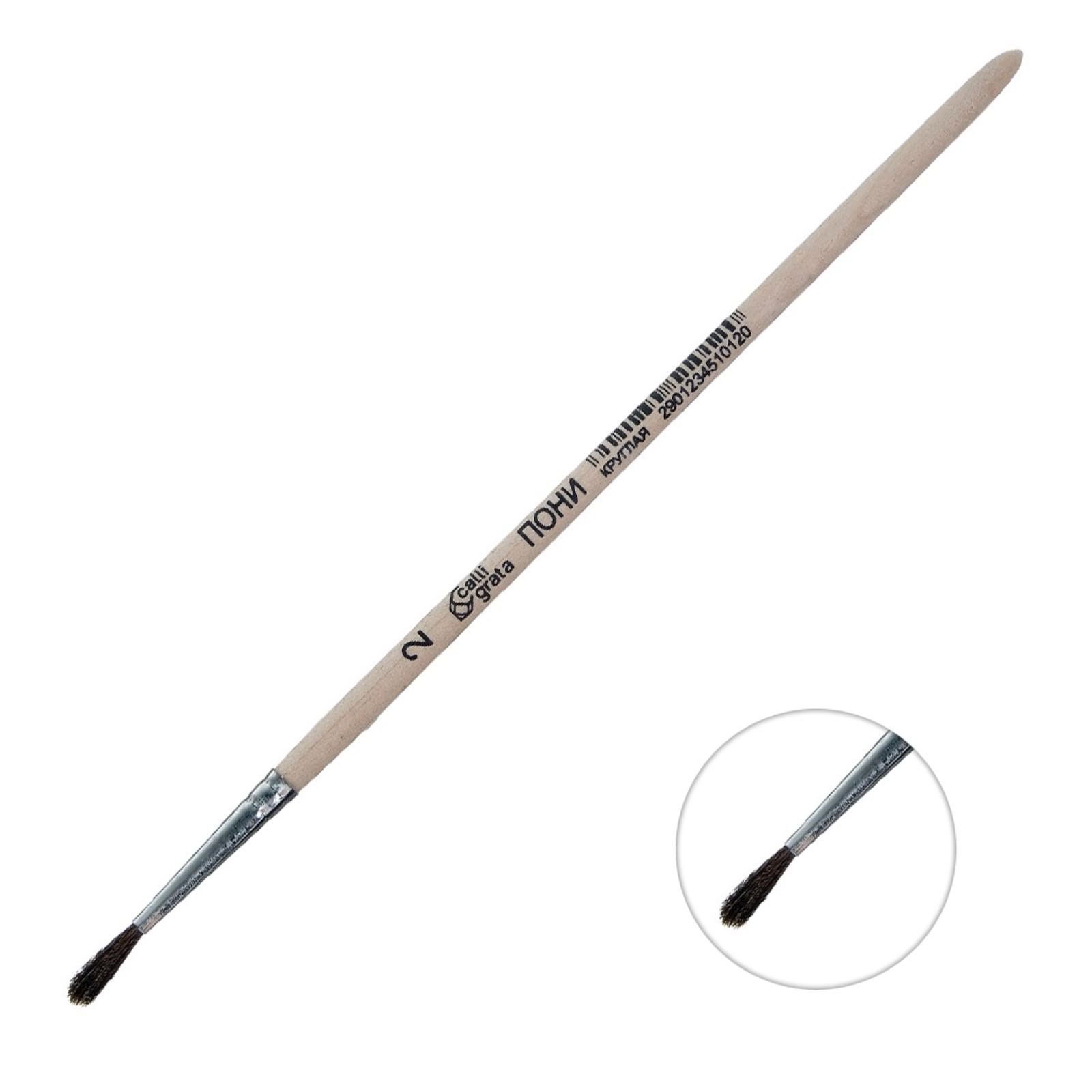 Кисть для рисования, пони, № 2, круглая, деревянная ручка, Calligrata, Россия