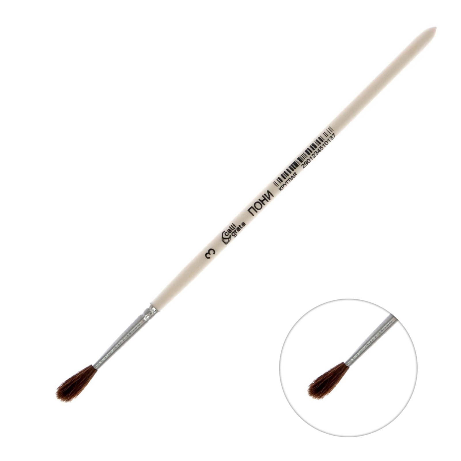 Кисть для рисования, пони, № 3, круглая, деревянная ручка, Calligrata, Россия