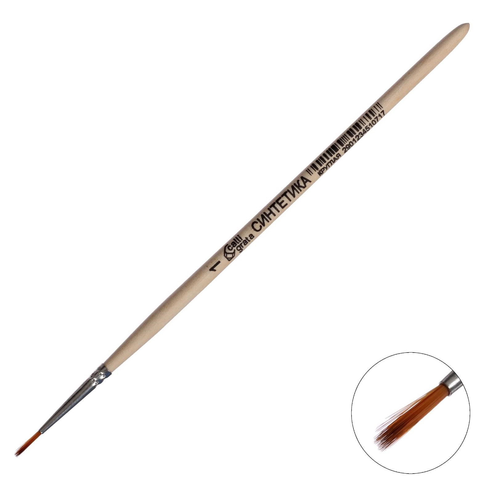 Кисть для рисования, синтетика, № 1, круглая, деревянная ручка, Calligrata, Россия
