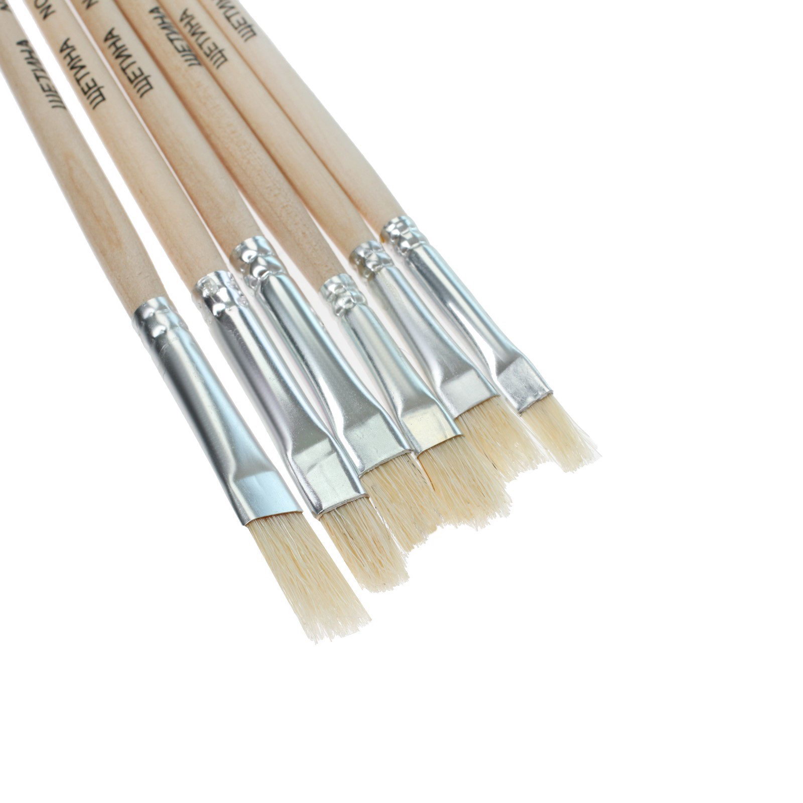 Набор кистей для рисования, щетина, 6 штук: № 1, 2, 3, 4, 5, 6, плоские, деревянная ручка, международный размер, Calligrata, Китай