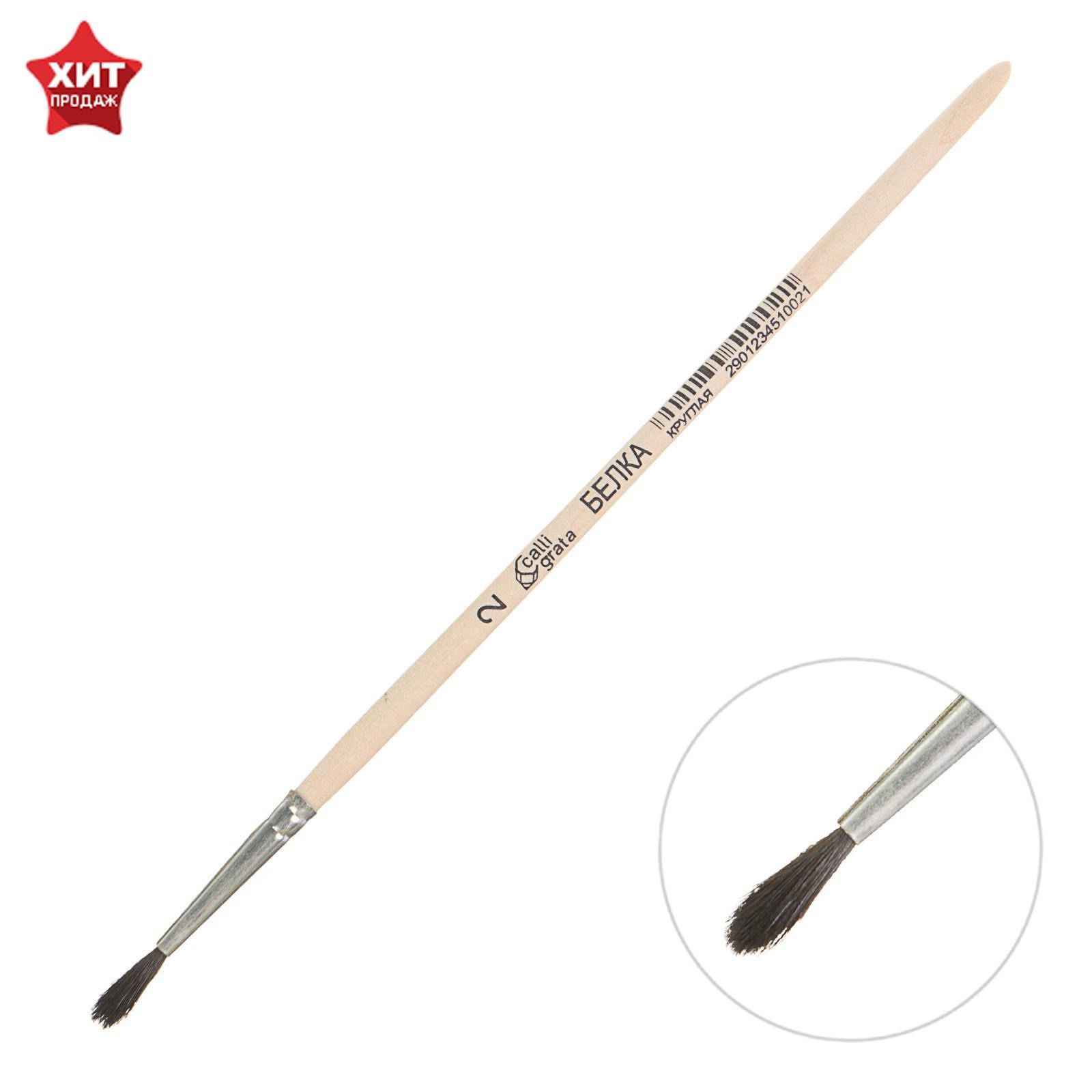Кисть для рисования, белка, № 2, круглая, деревянная ручка, Calligrata, Россия
