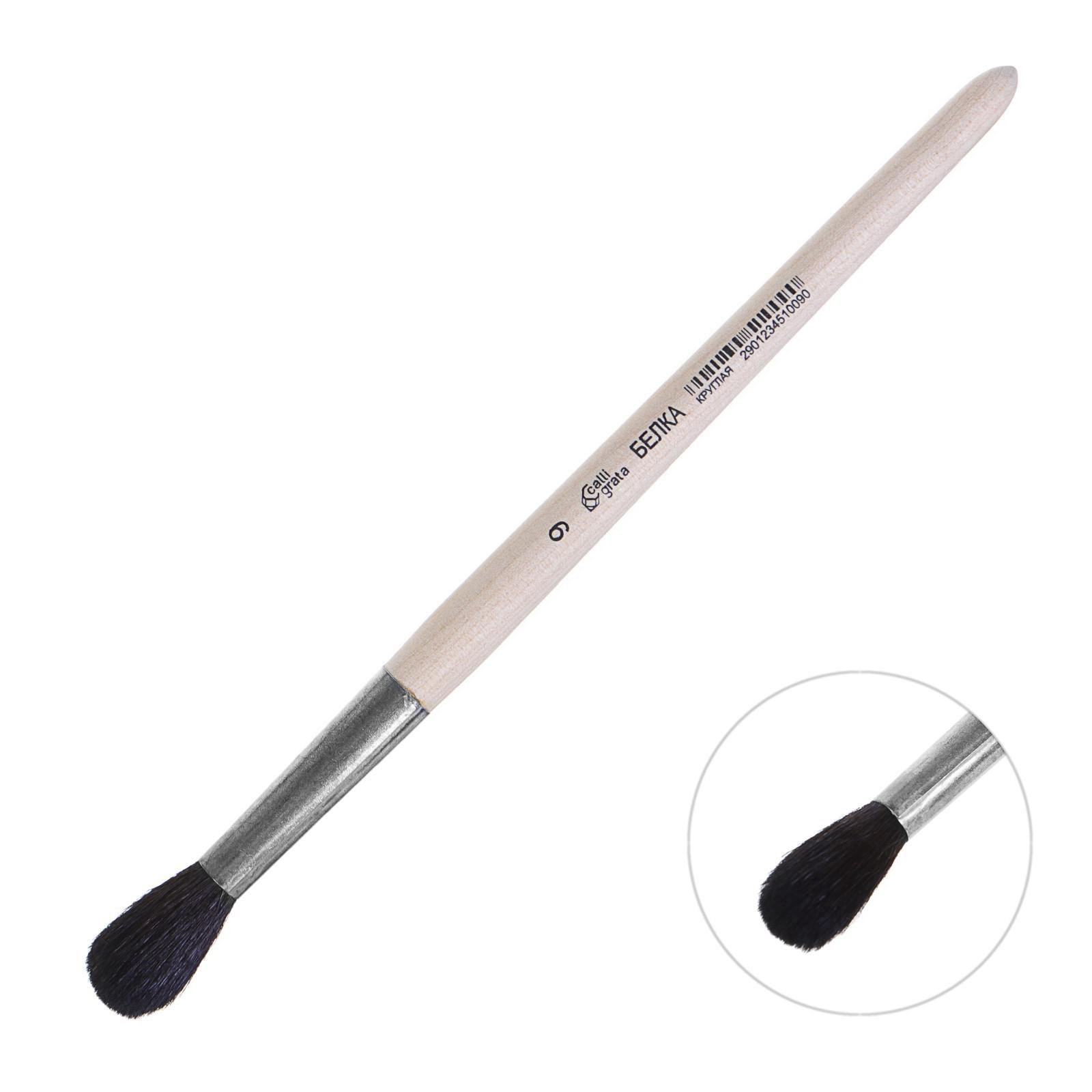 Кисть для рисования, белка, № 9, круглая, деревянная ручка, Calligrata, Россия