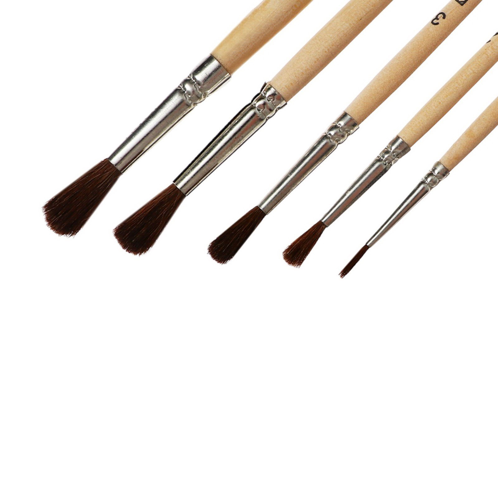 Набор кистей для рисования, пони, 5 штук: №: 1, 2, 3, 4, 5, круглые, деревянная ручка, в пенале, Calligrata, Россия
