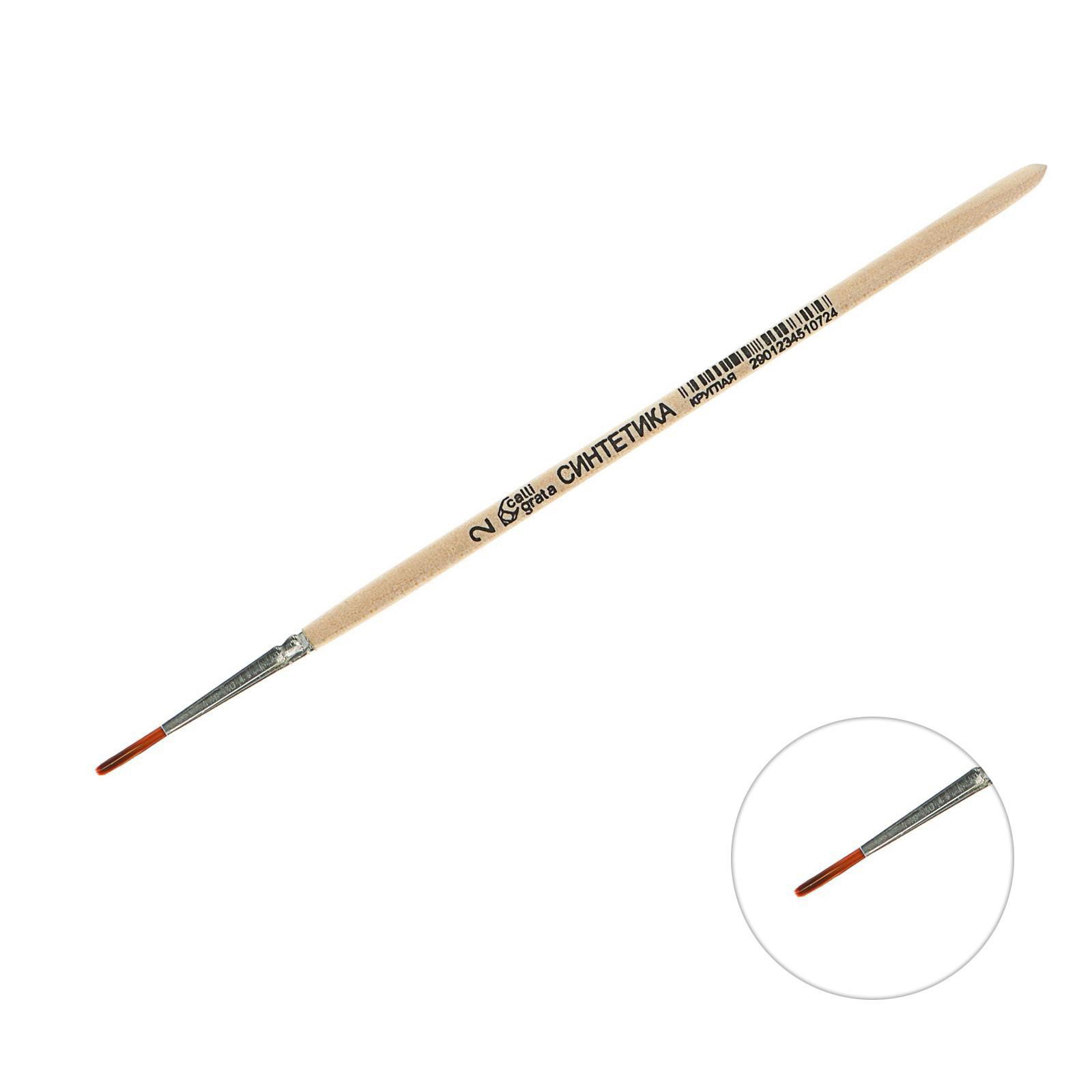 Кисть для рисования, синтетика, № 2, круглая, деревянная ручка, Calligrata, Россия