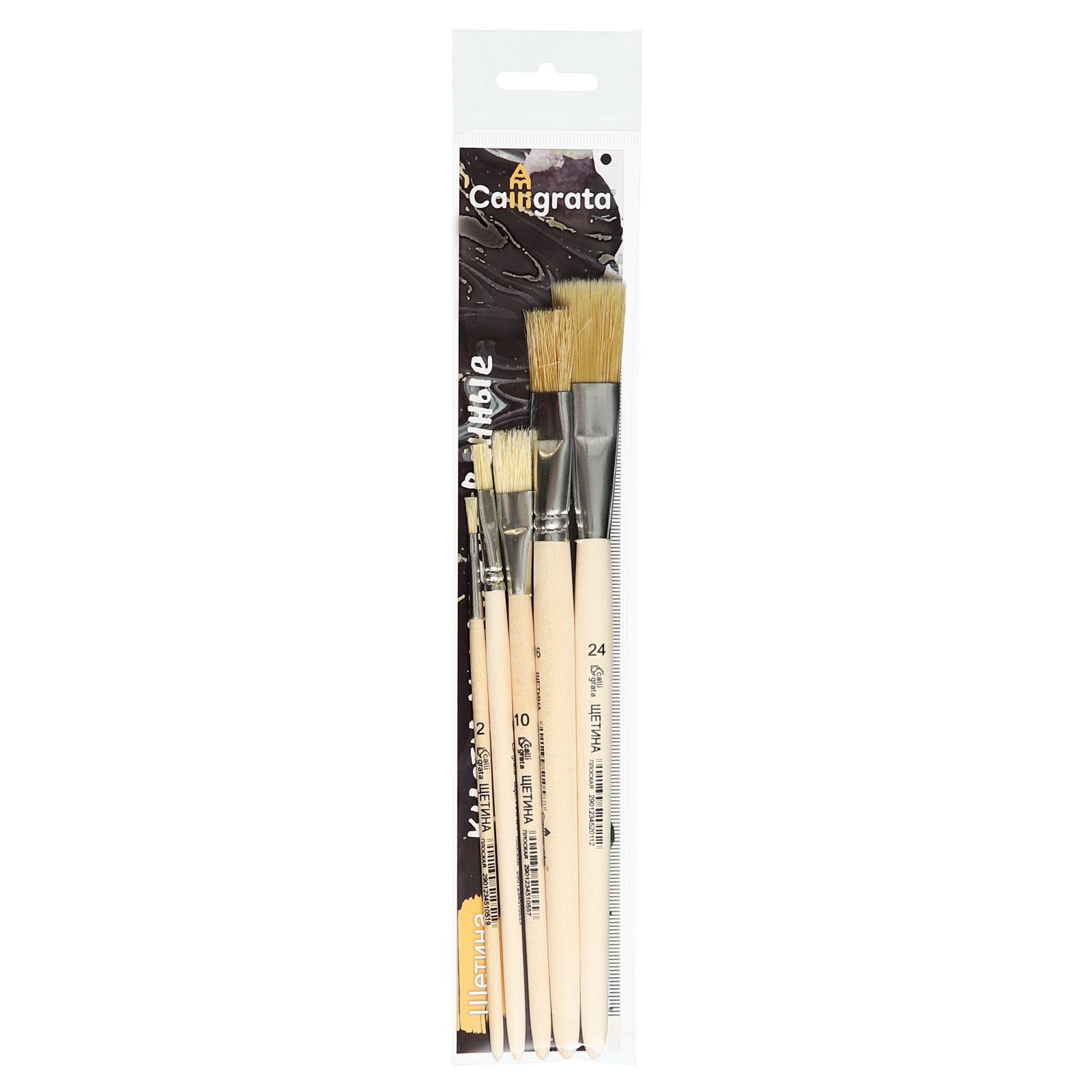 Набор кистей для рисования, щетина, 5 штук: №: 2, 6, 10, 16, 24, плоские, деревянная ручка, в пакете, Calligrata, Россия